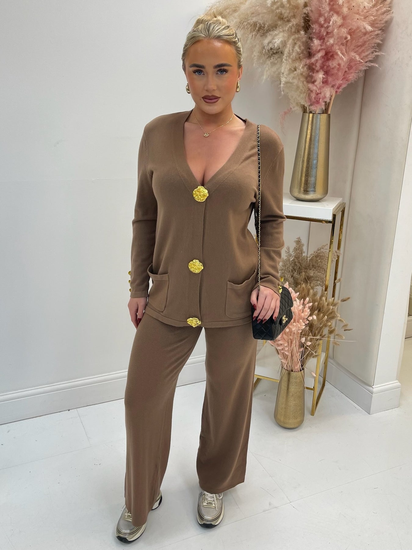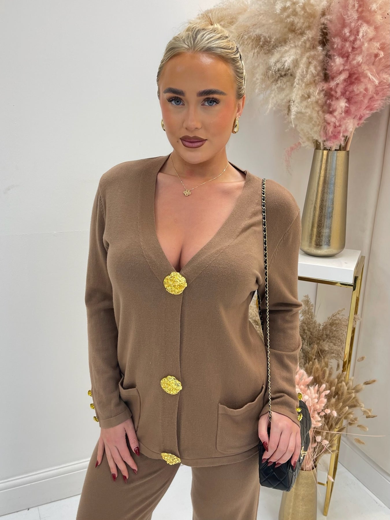 Cora tan gold button knit Loungeset