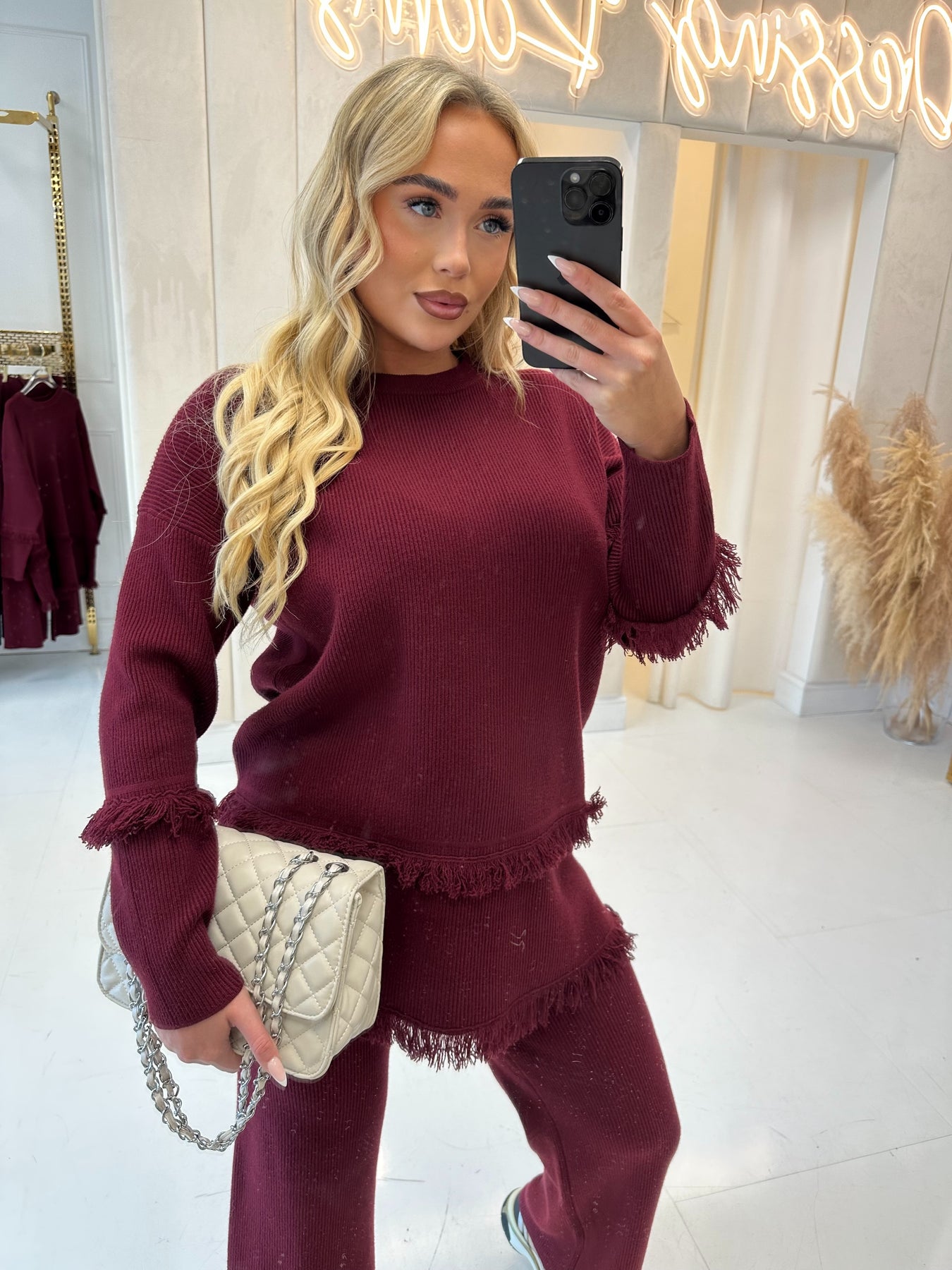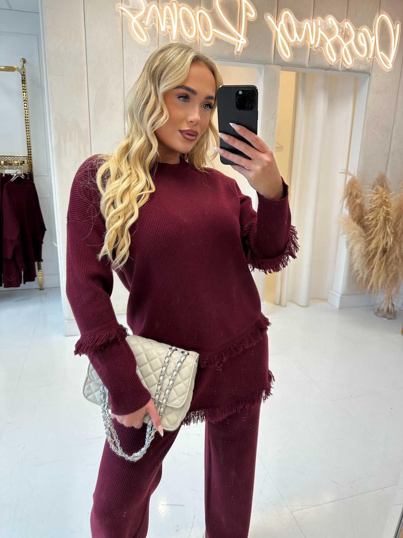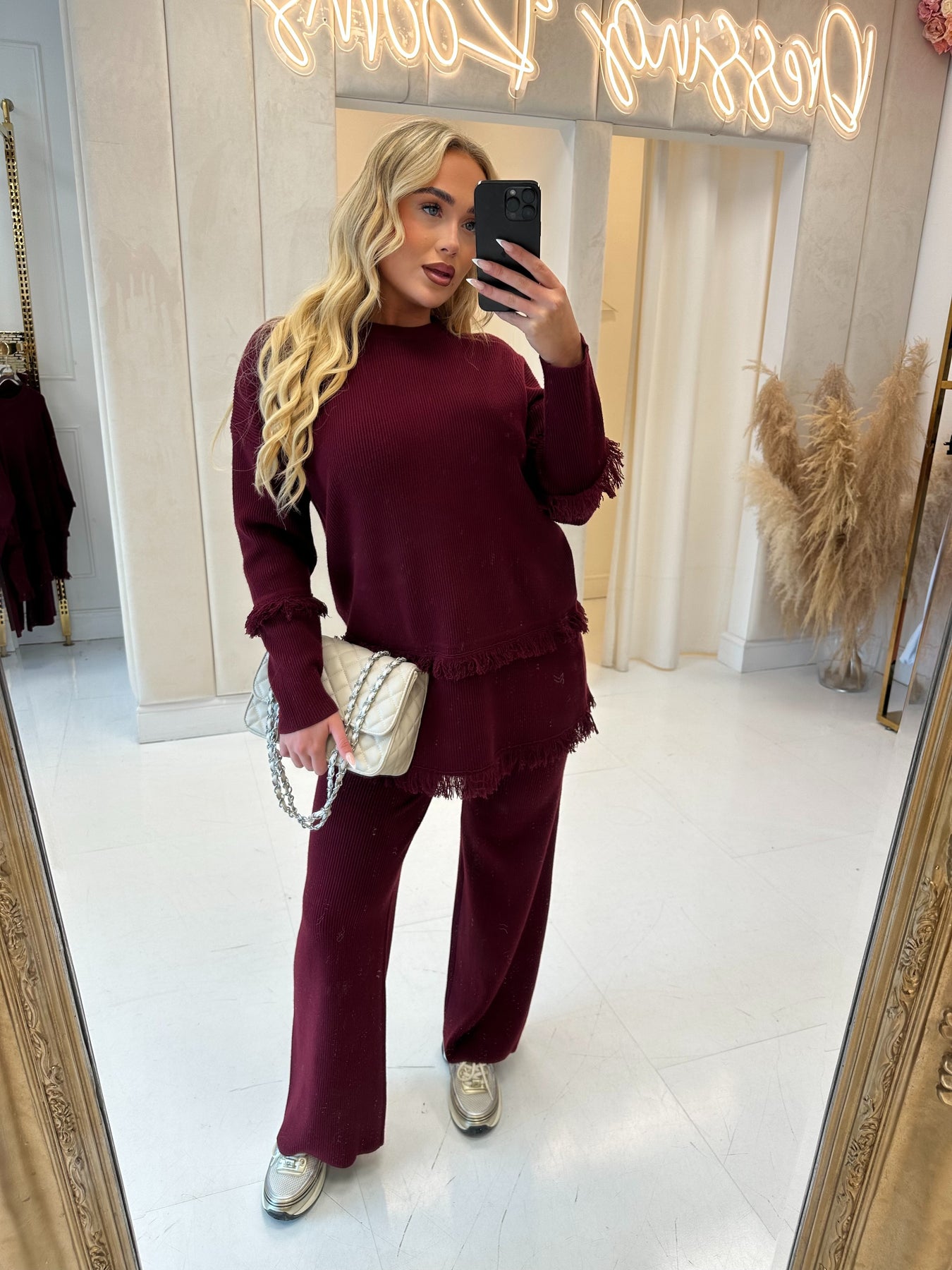 SYDNEY BURGUNDY FRAYED 2 PIECE SET