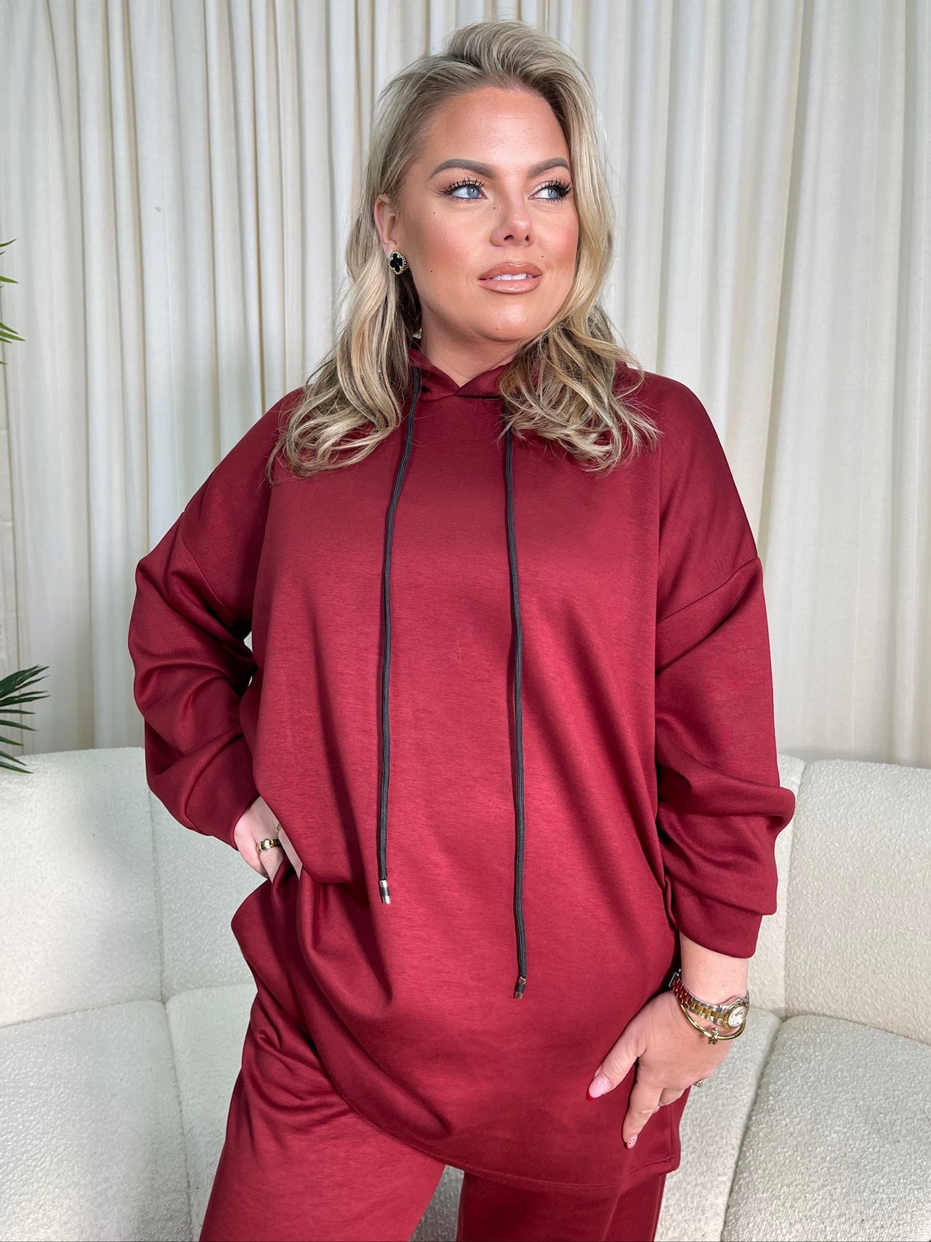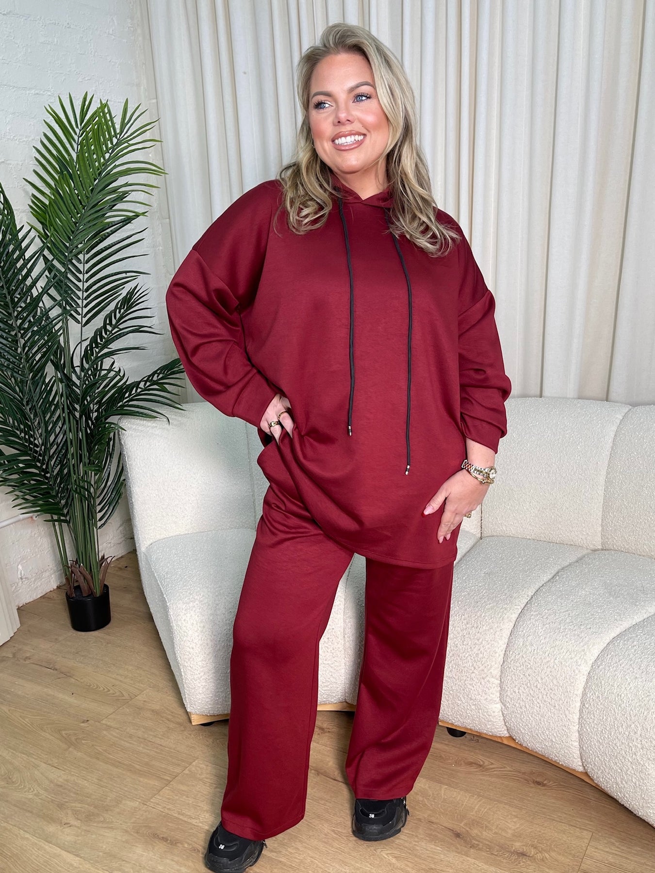 Phoenix Curve Burgundy Wide Leg Hoodie Set