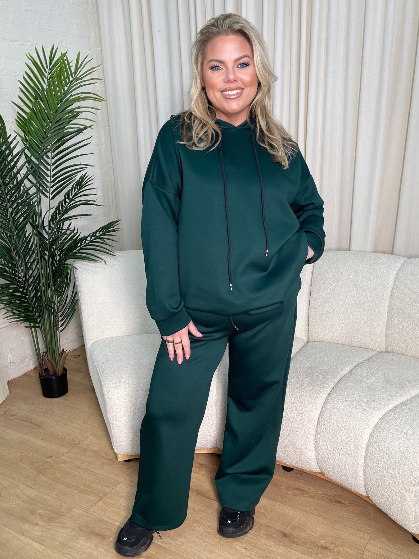 Phoenix Curve Forest Green Wide Leg Hoodie Set