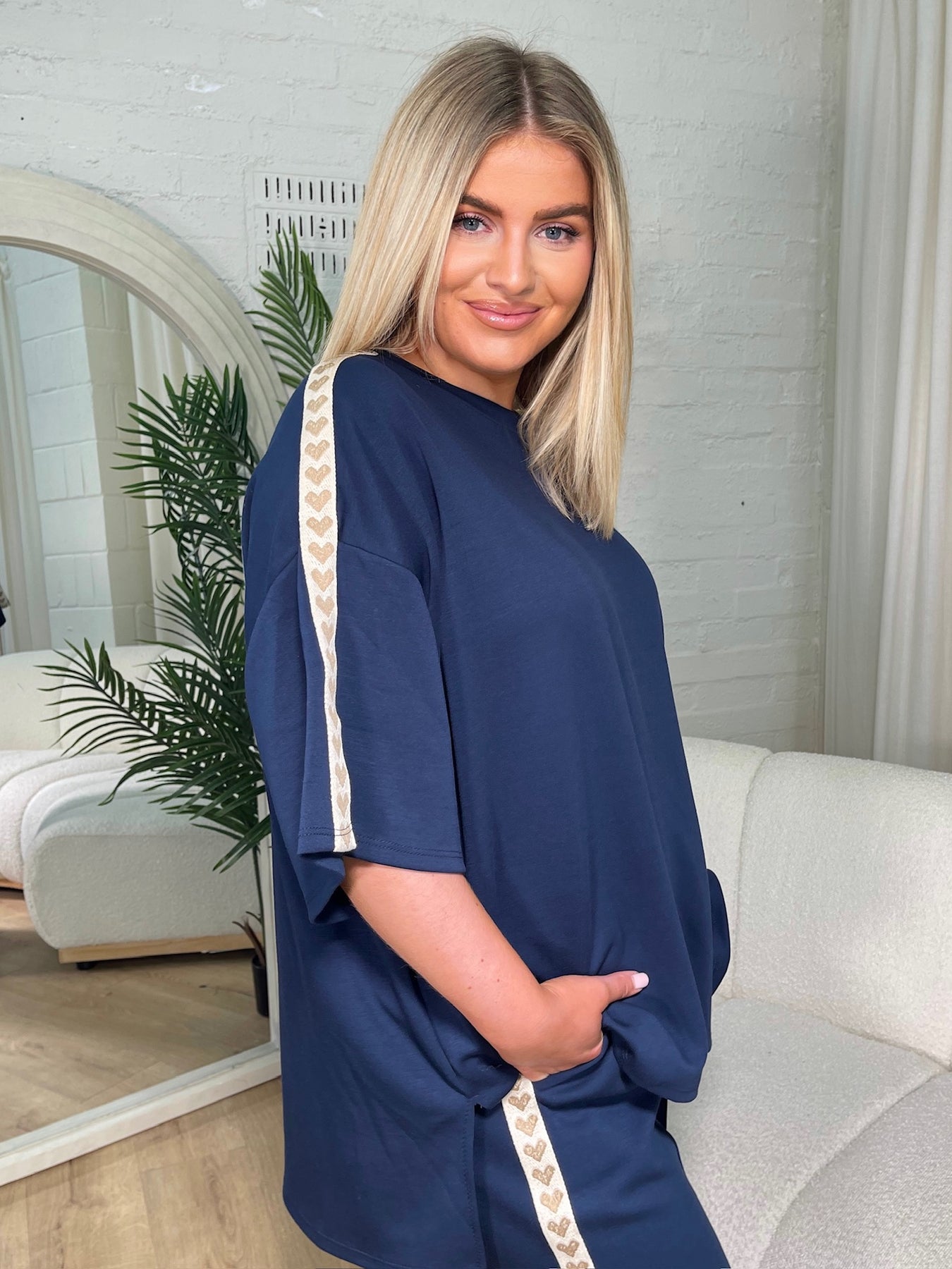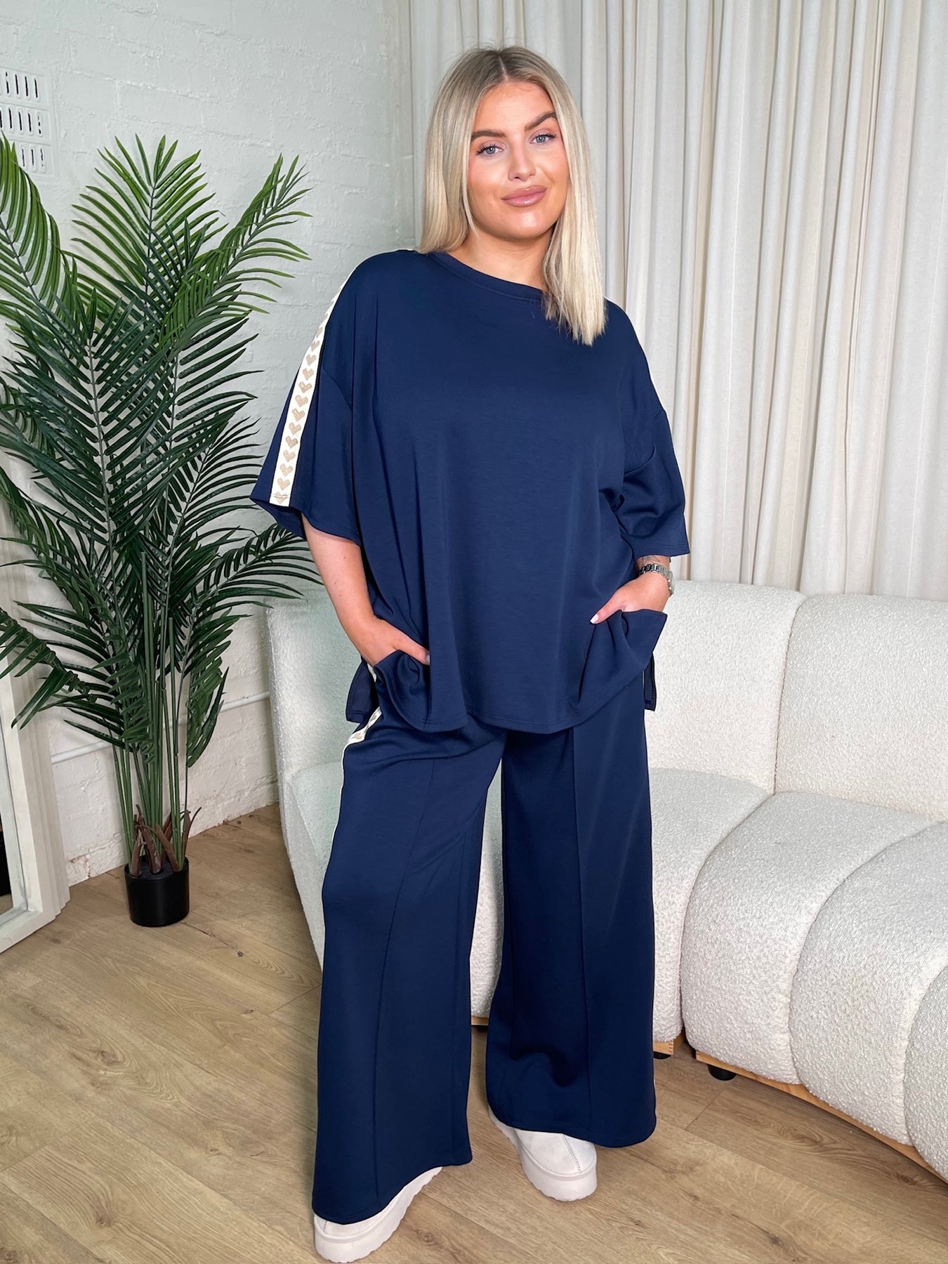 Wren Curve Navy Heart Detailed Lounge Set