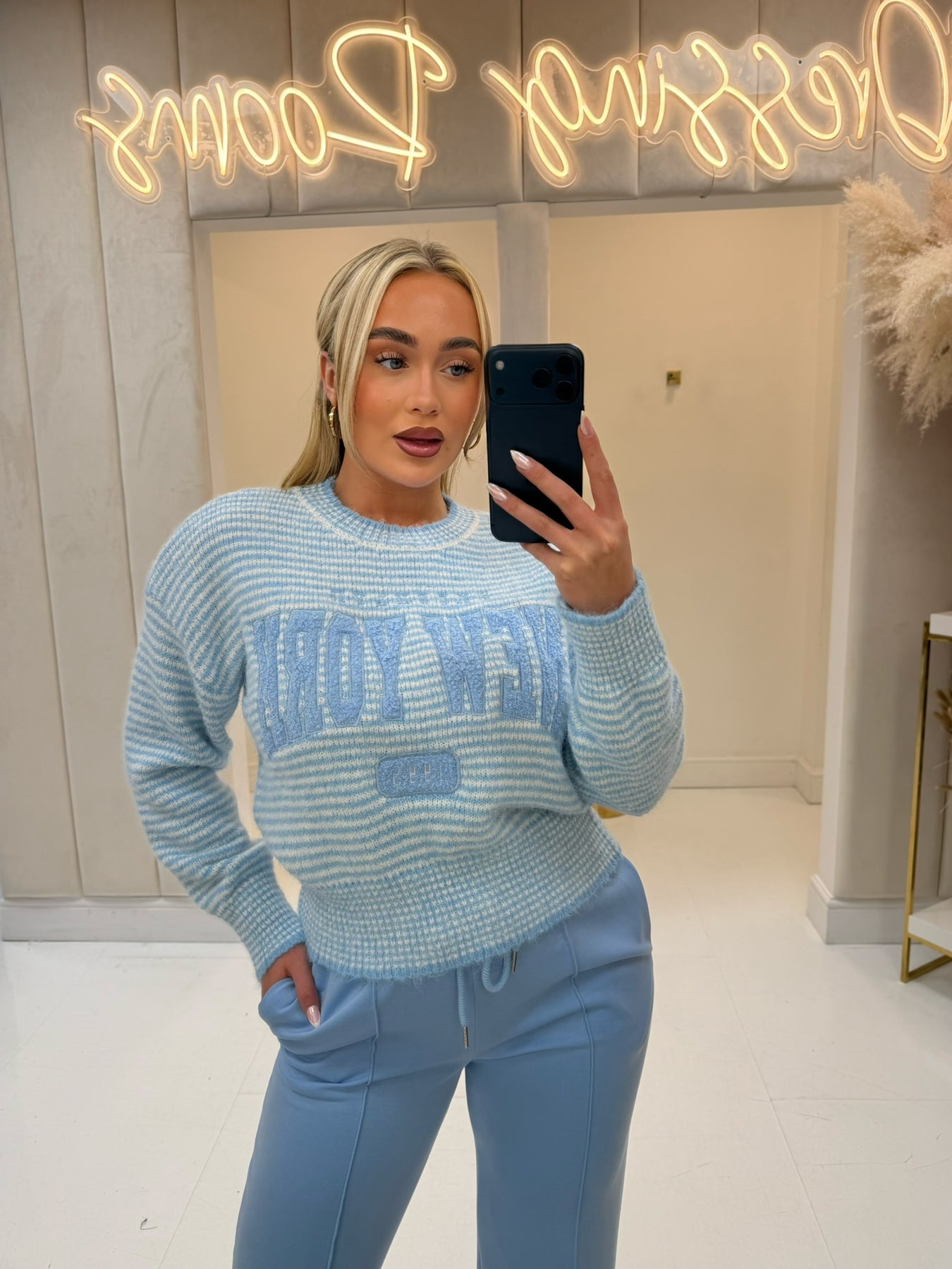 Bailey Blue Boucle New York 1995 Stripe Jumper