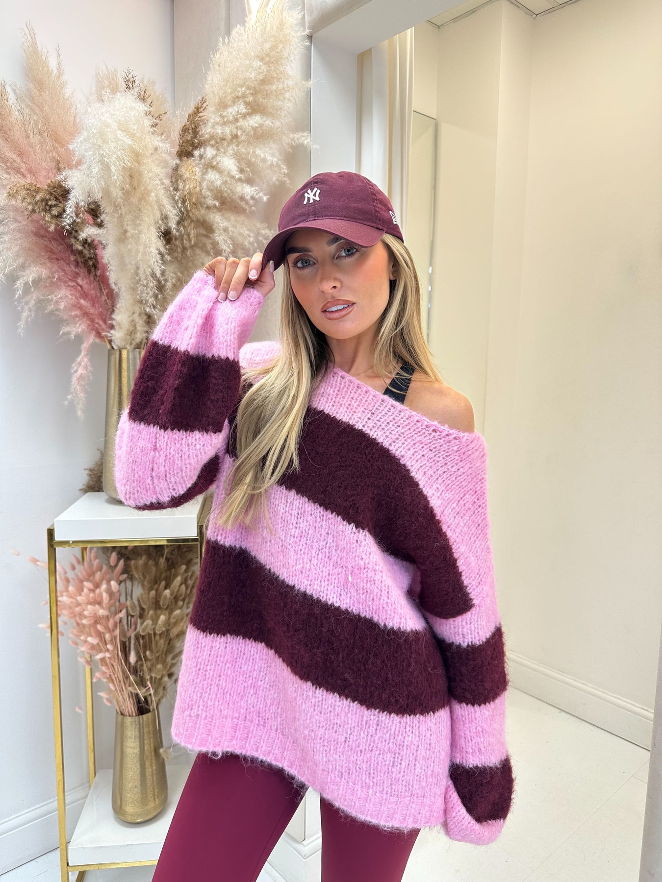 Cecilia pink/burgundy stripe jumper