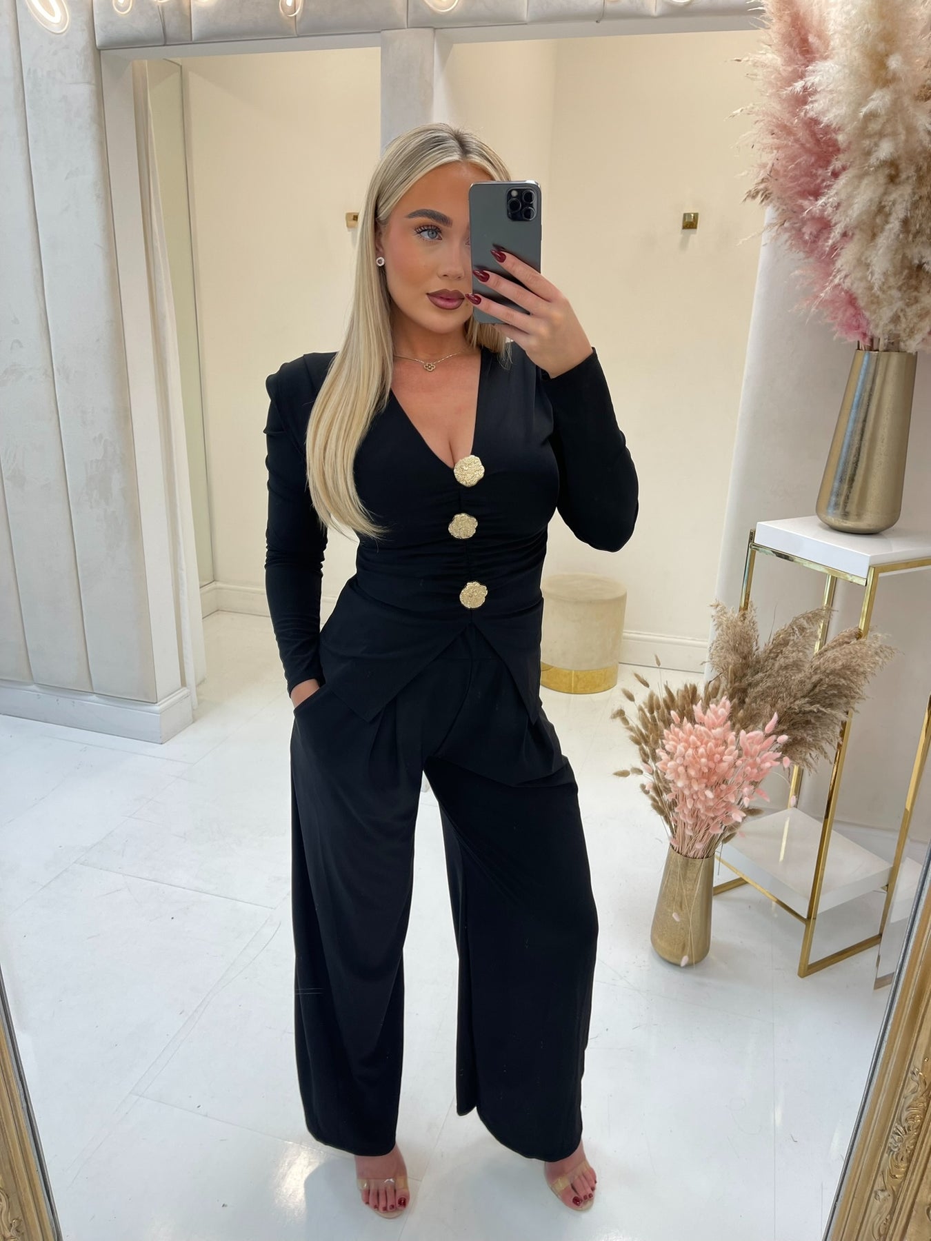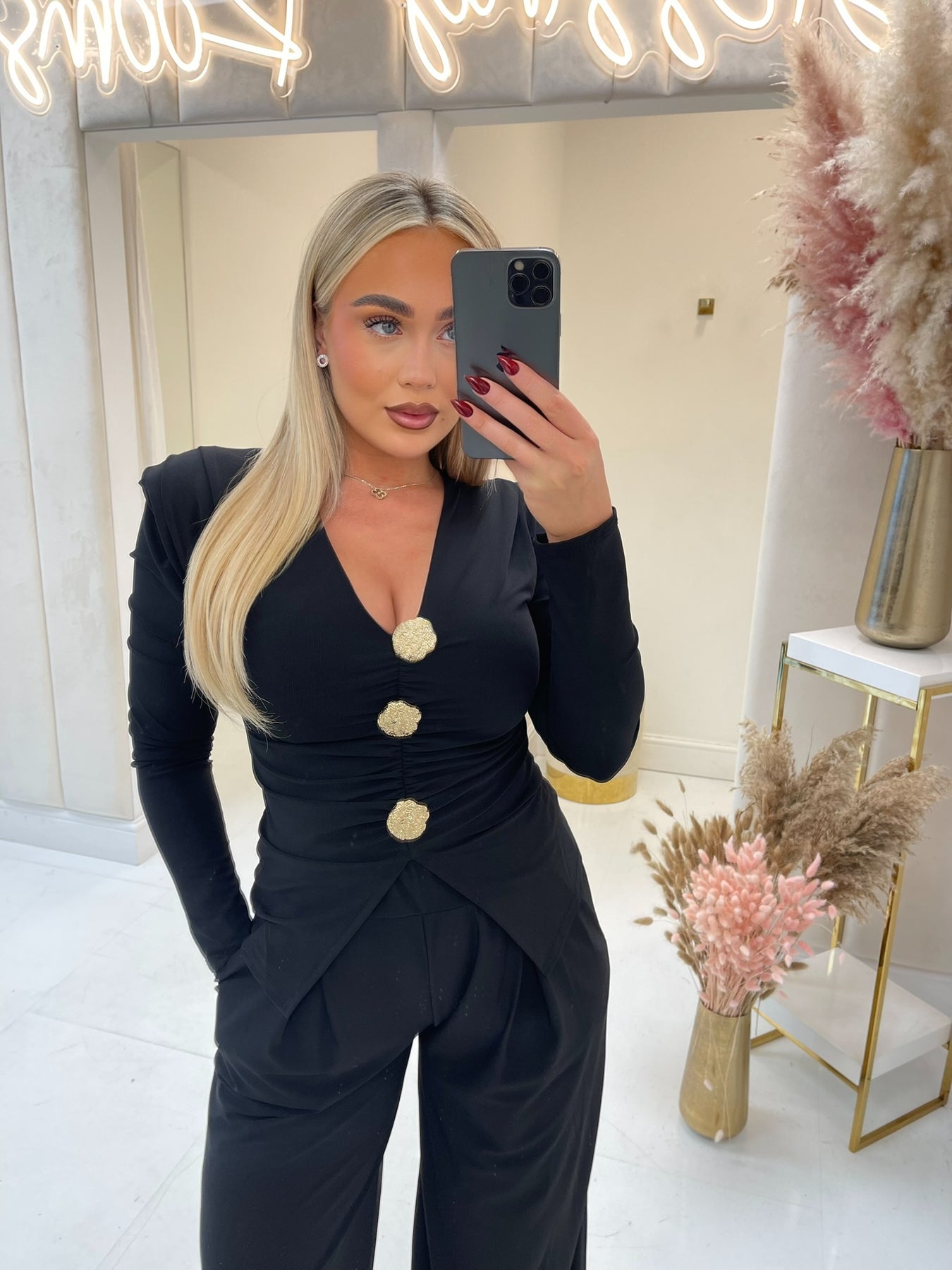 TIFFANY BLACK GOLD BUTTON RUCHED 2 PIECE SET