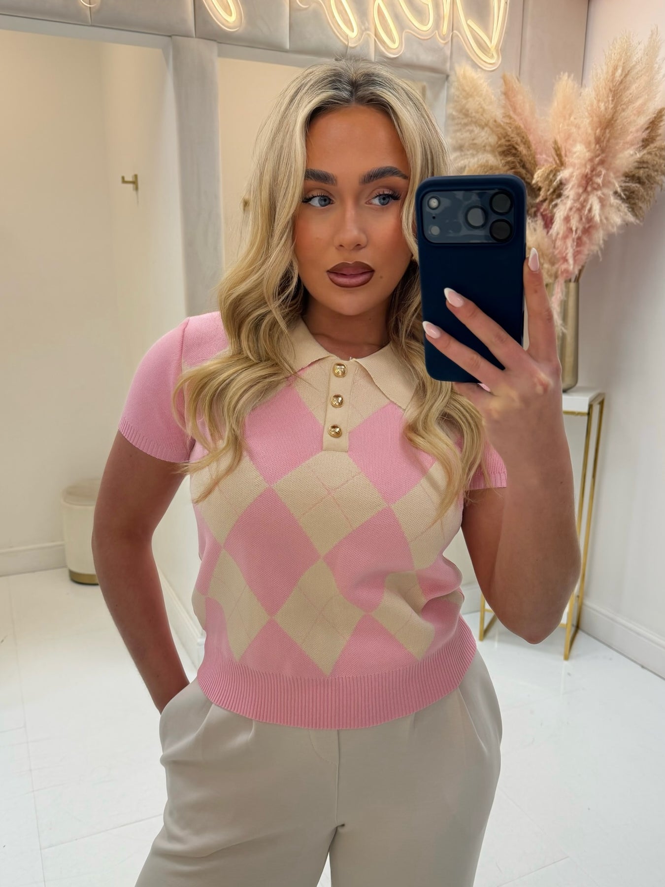 GRACE PINK DIAMOND COLLAR TOP