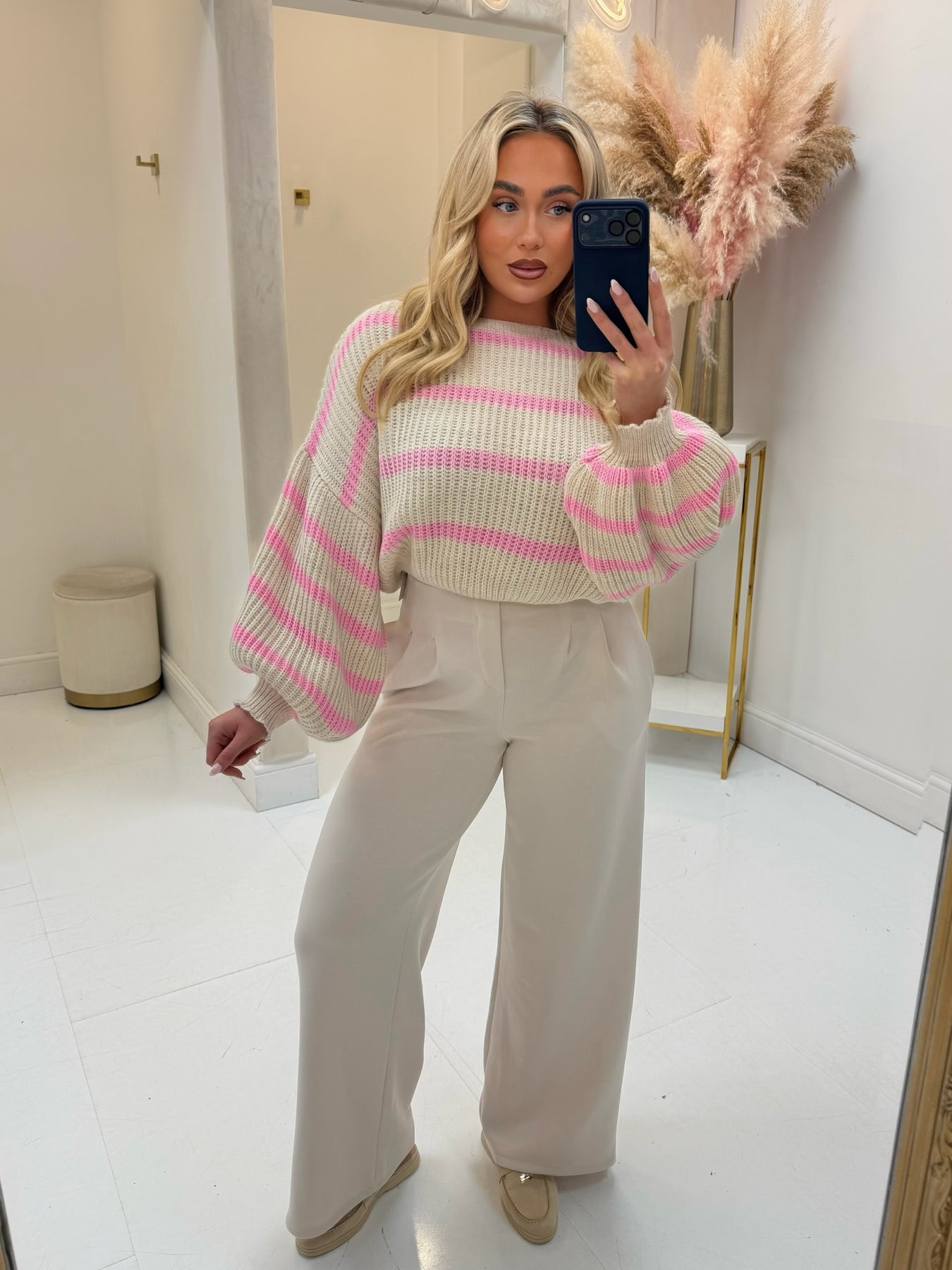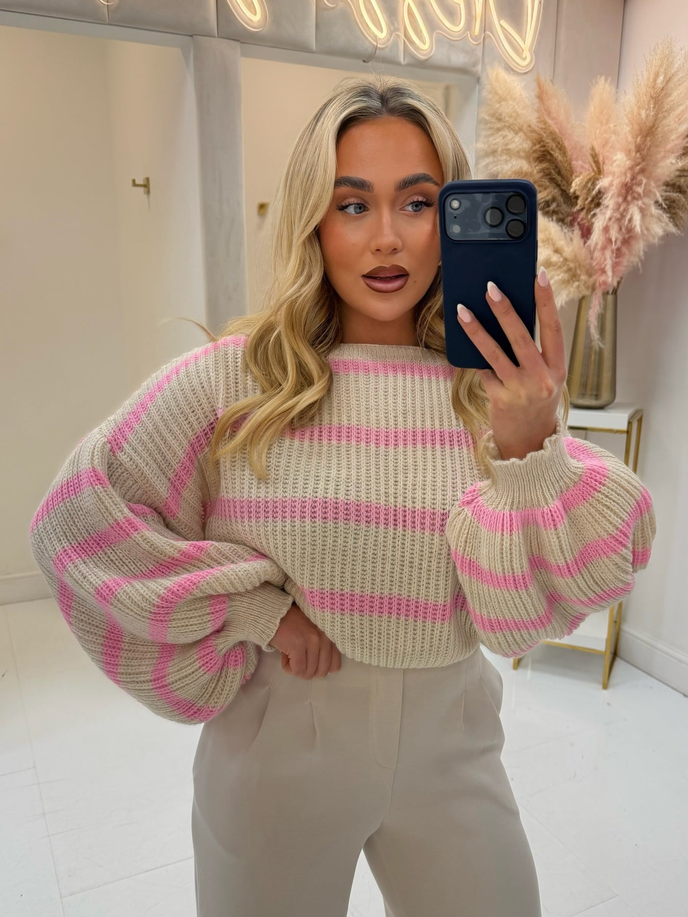 PEGGIE BEIGE STRIPE KNIT JUMPER