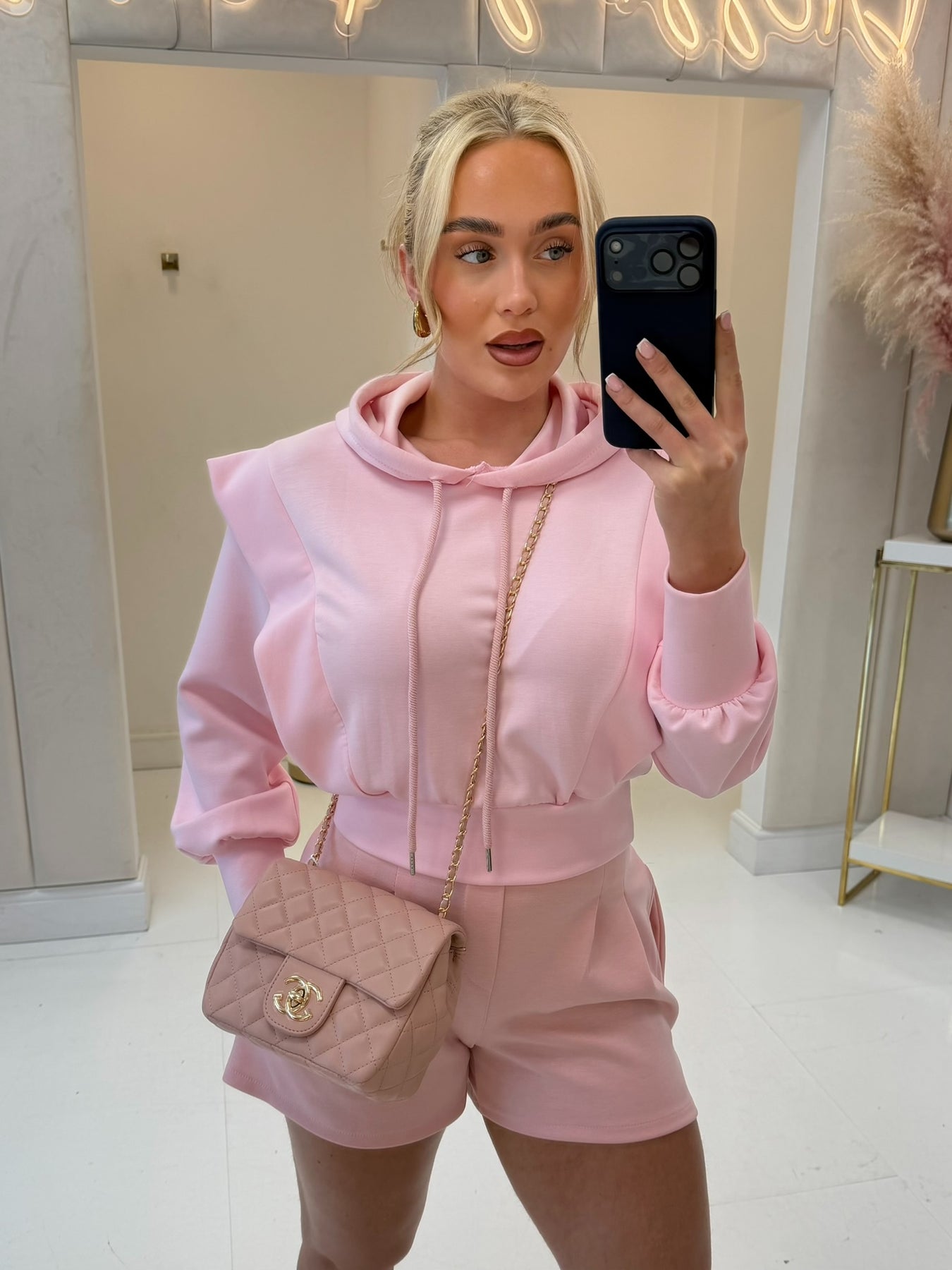 Tori Baby Pink Drawstring Cropped hoodie
