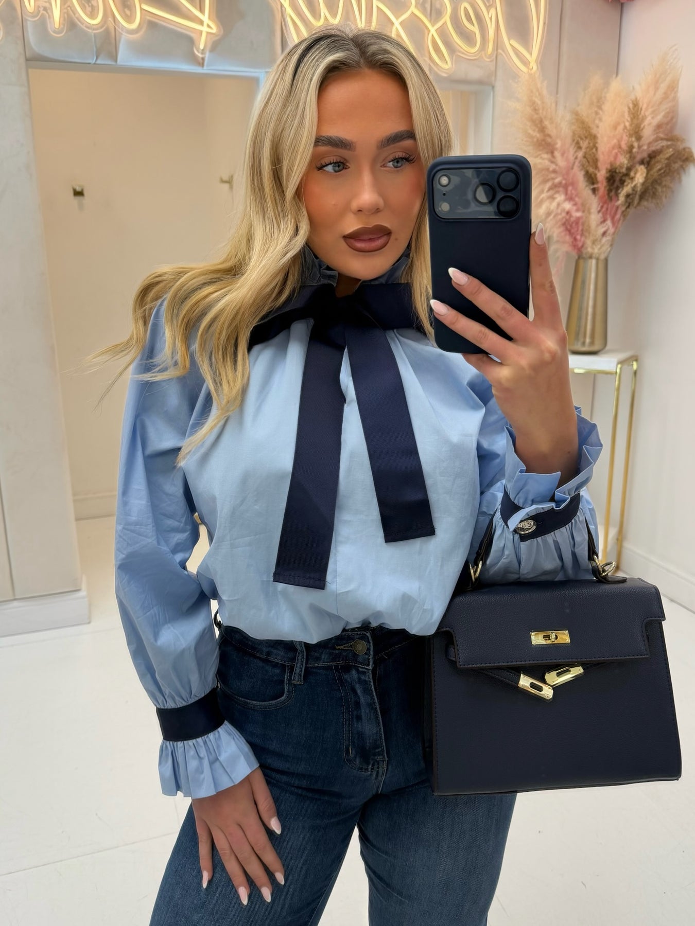 VICKY BLUE SHIRT WITH NAVY TIE