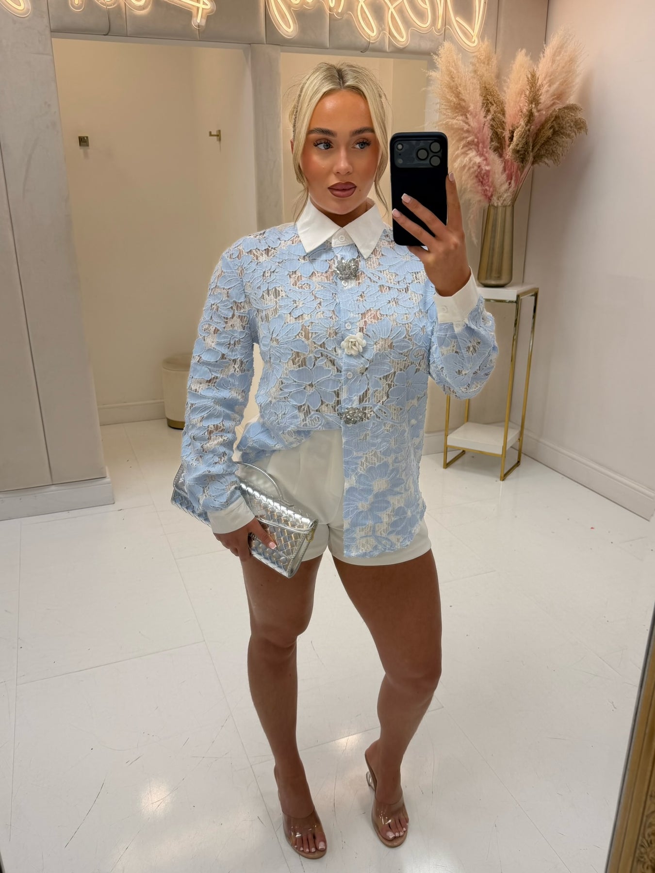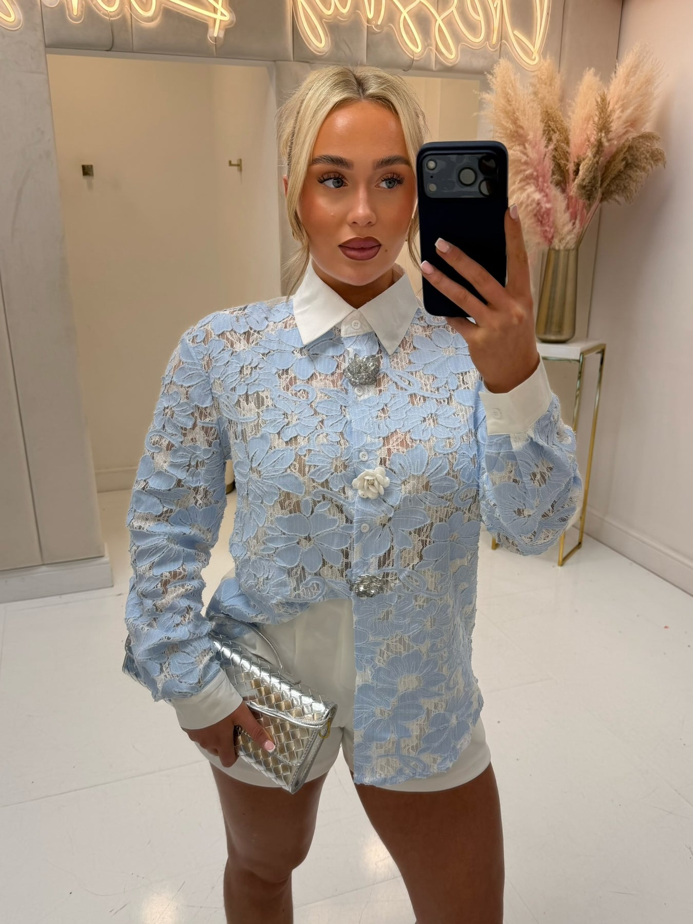 ALI BLUE FLOWER BUTTON SHIRT - LUXE