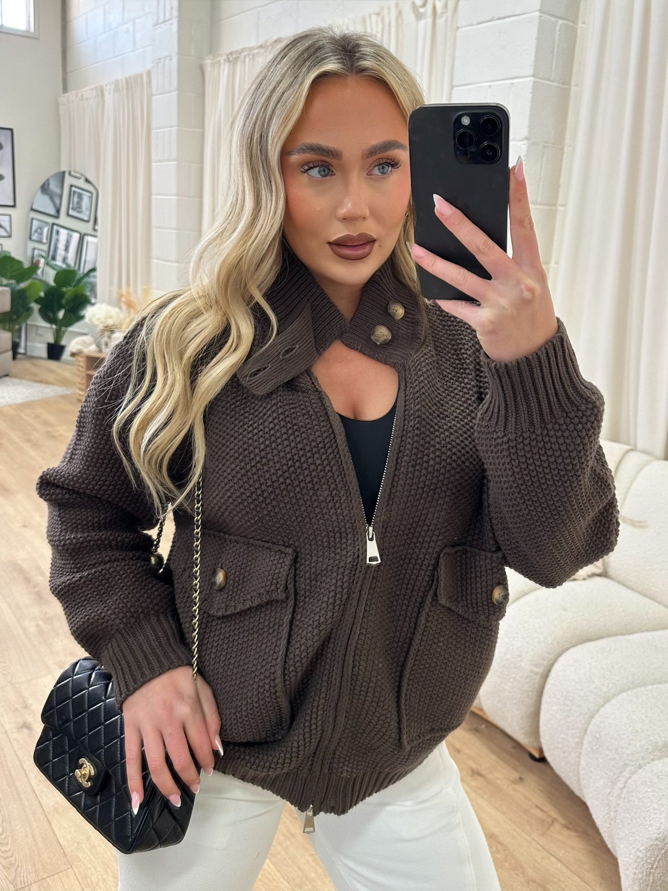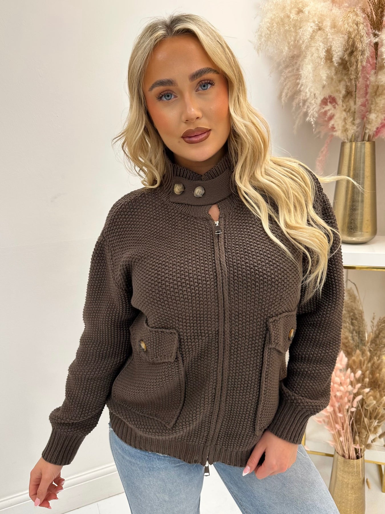 BELINDA BROWN ZIP UP KNIT JACKET