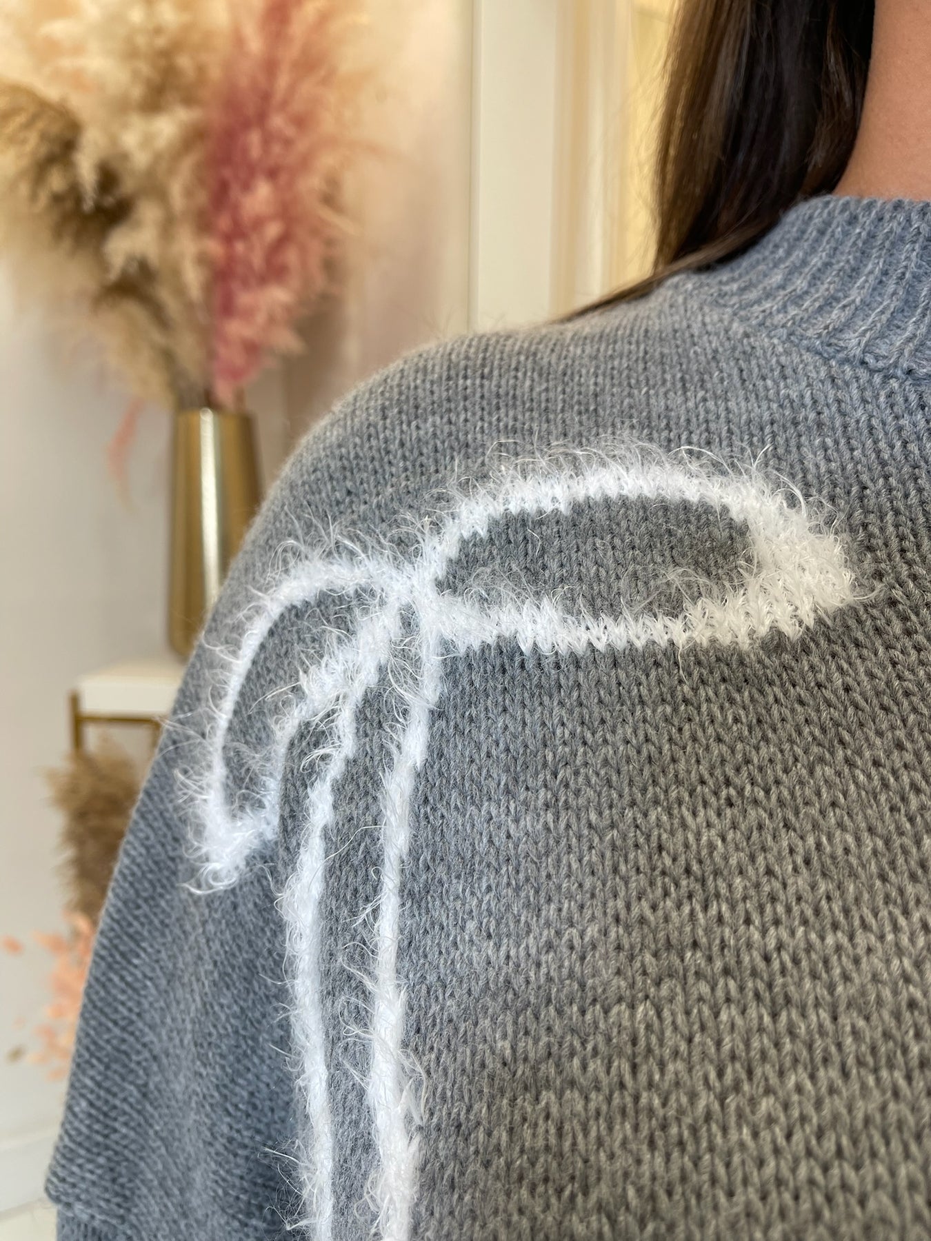 Carol Curve Grey Fluffy Bow Oversized Jumper