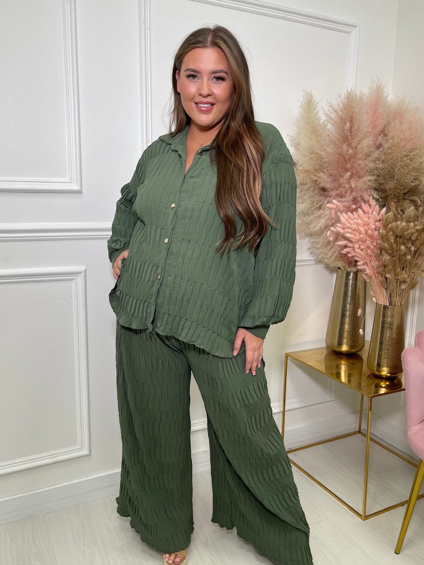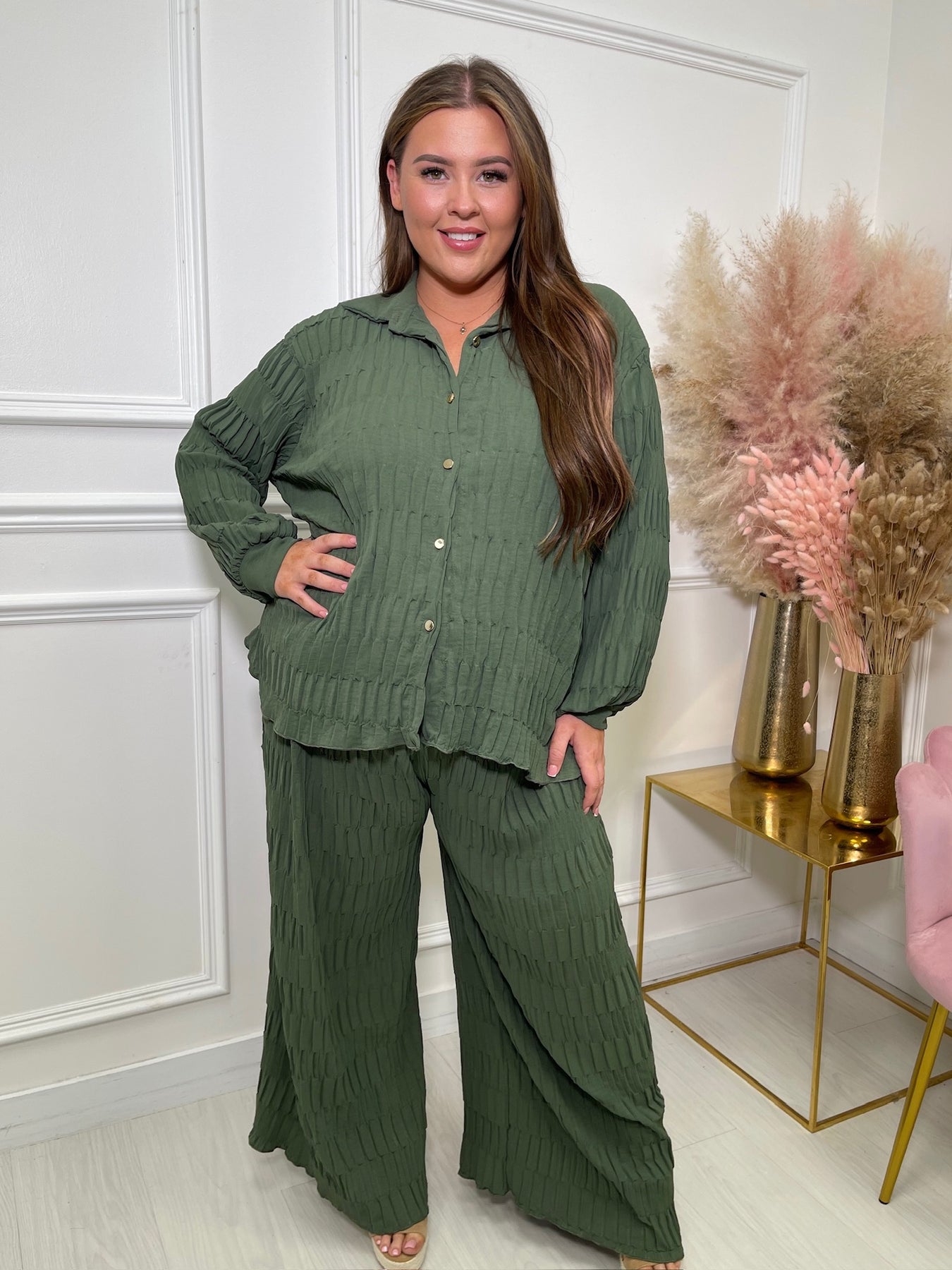 Elsa Curve Khaki Crinkle Two Piece Co-Ord