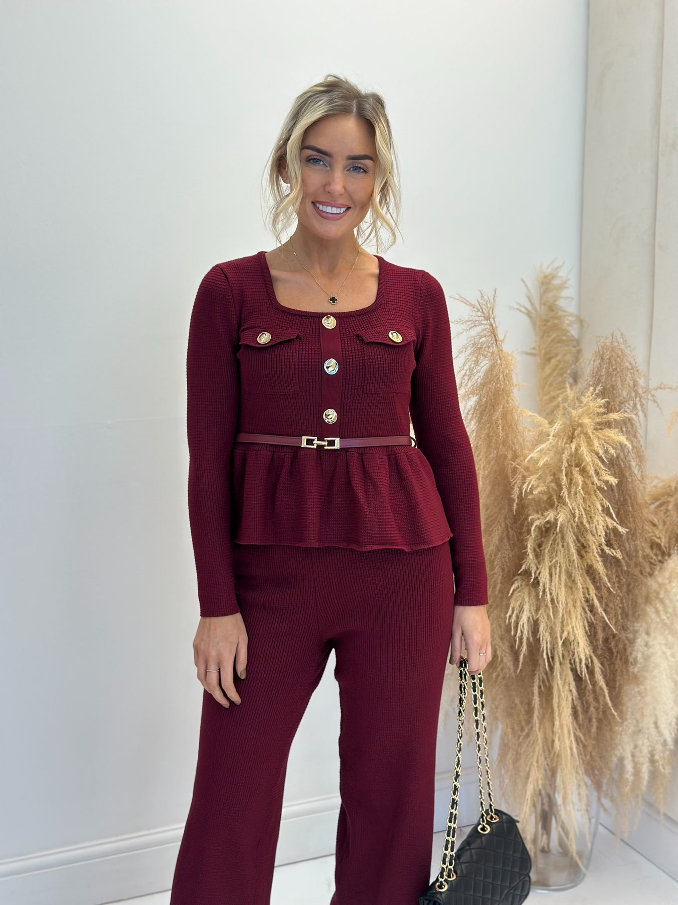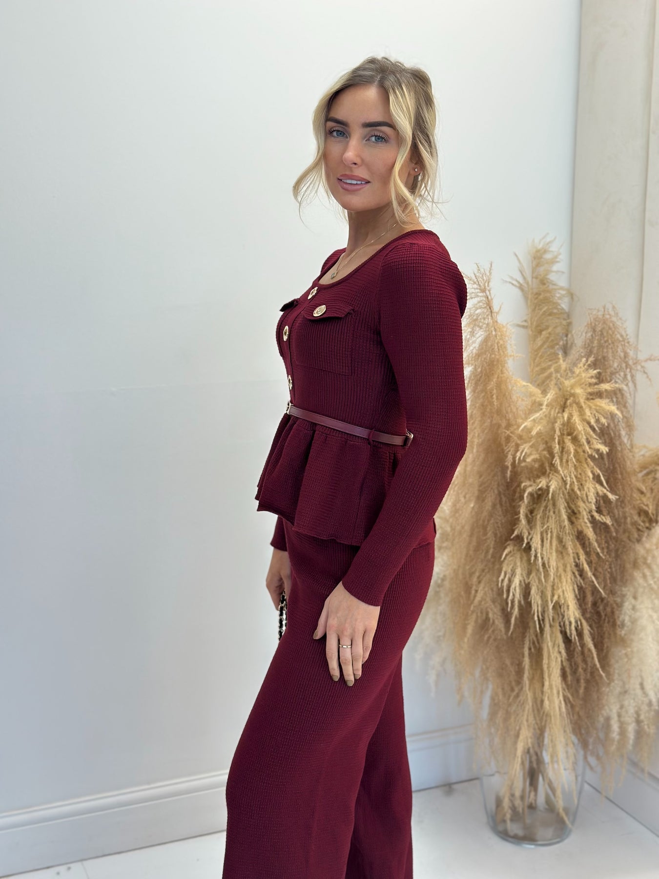 LEANNA BURGUNDY GOLD BUTTON PEPLUM 2 PIECE SET