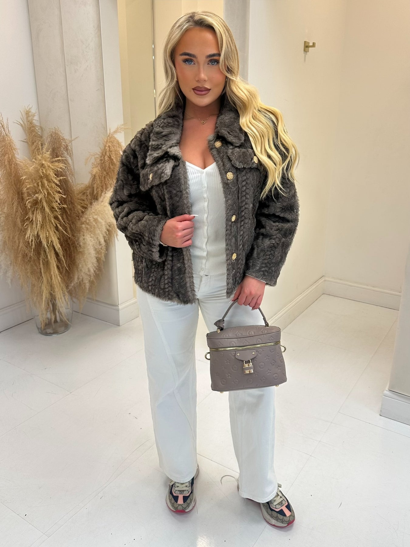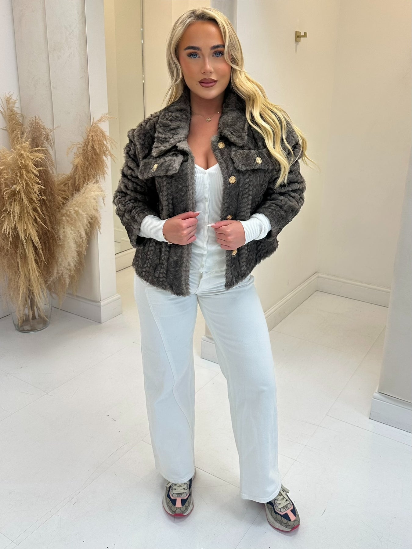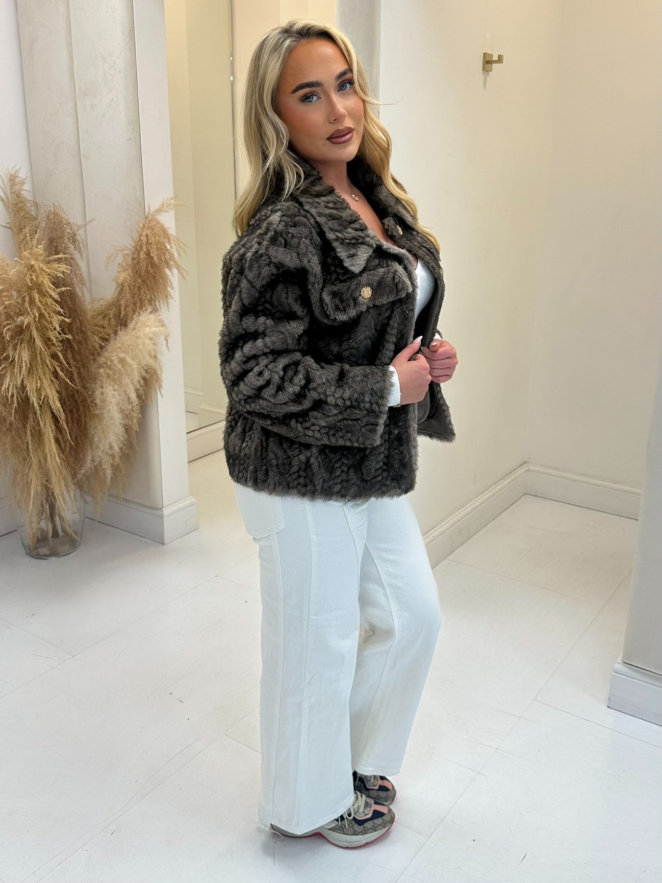 POPPIE MINK FAUX FUR GOLD BUTTON JACKET