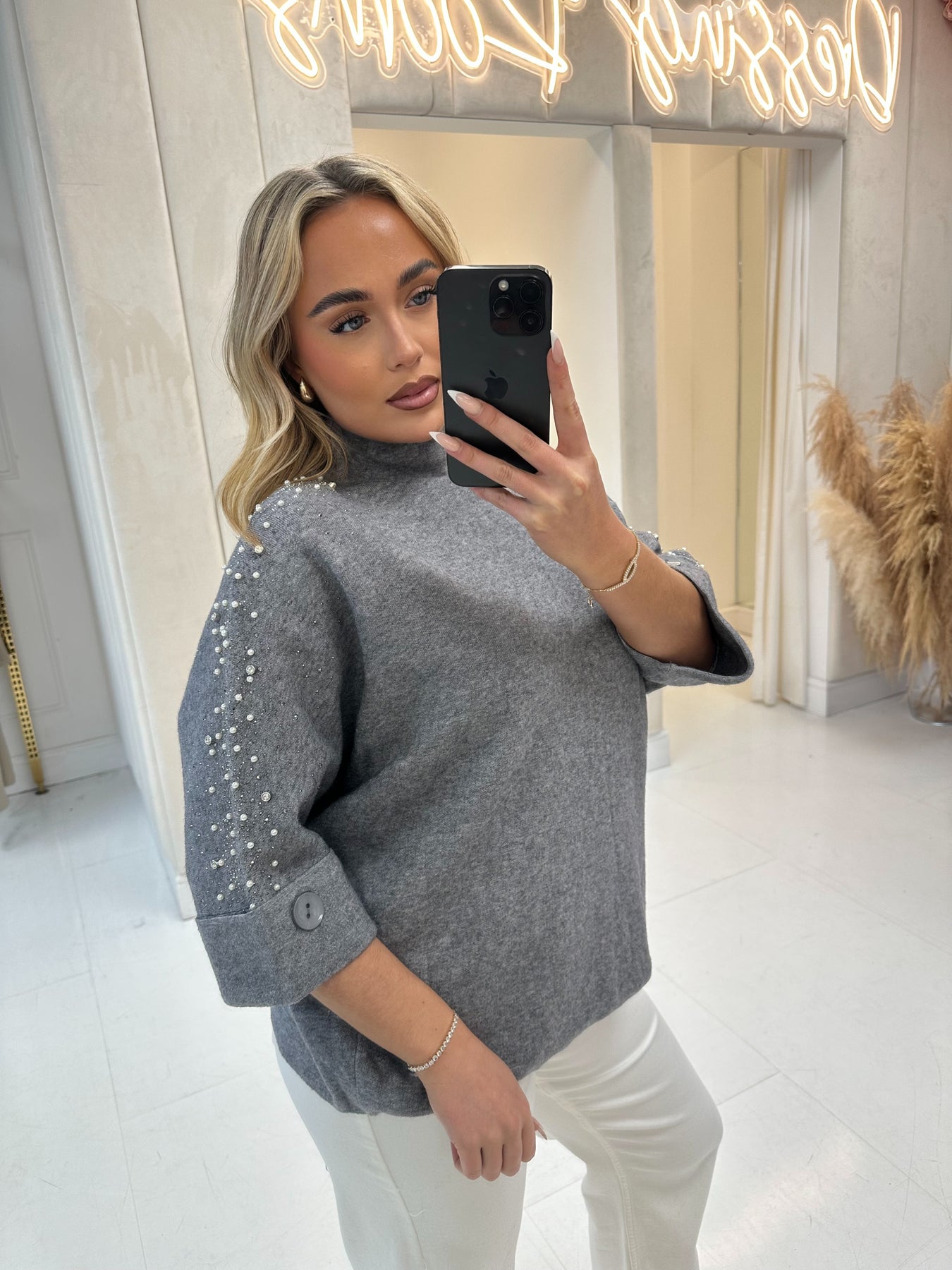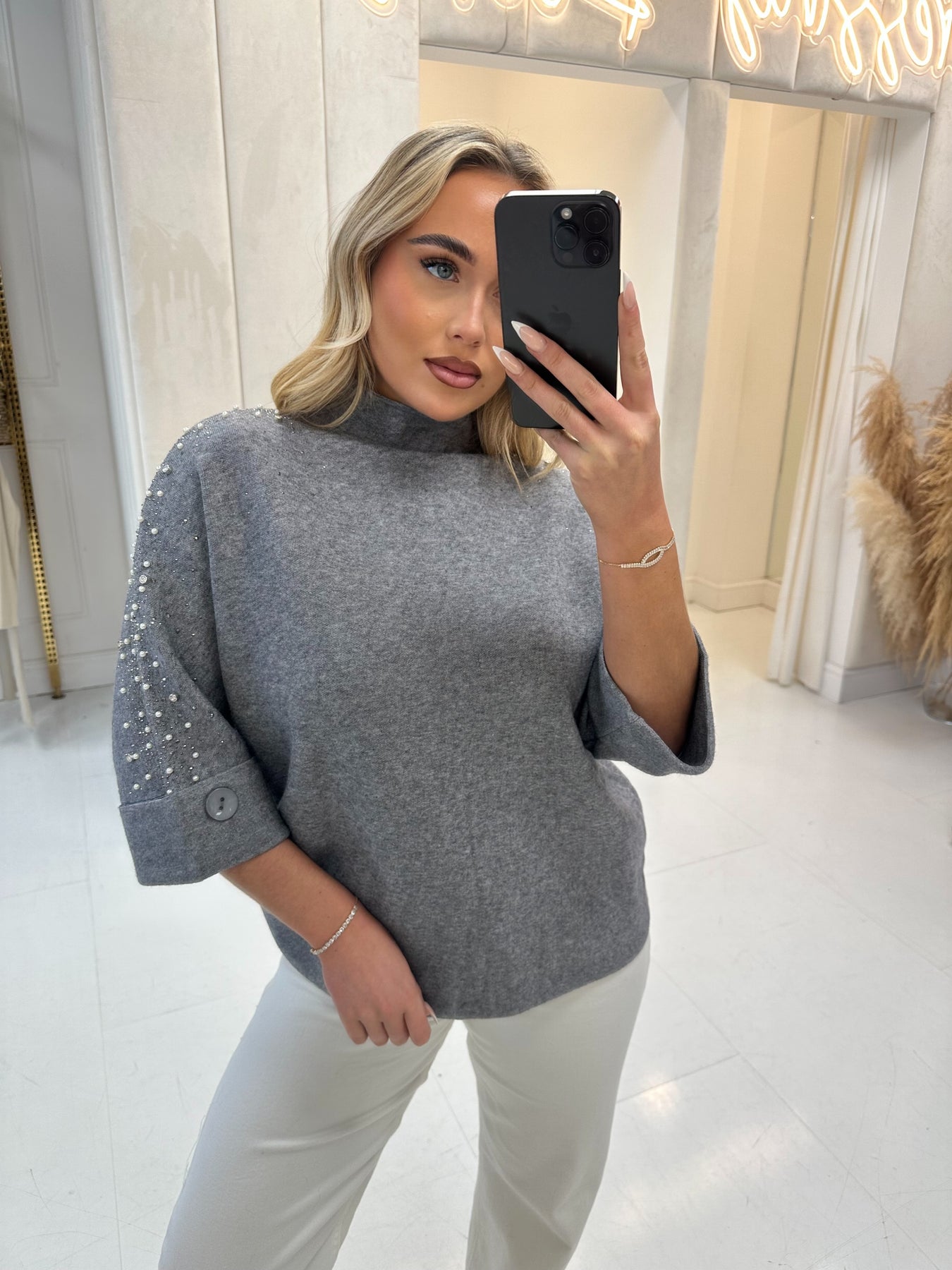 RHEA GREY CRYSTAL DETAIL JUMPER