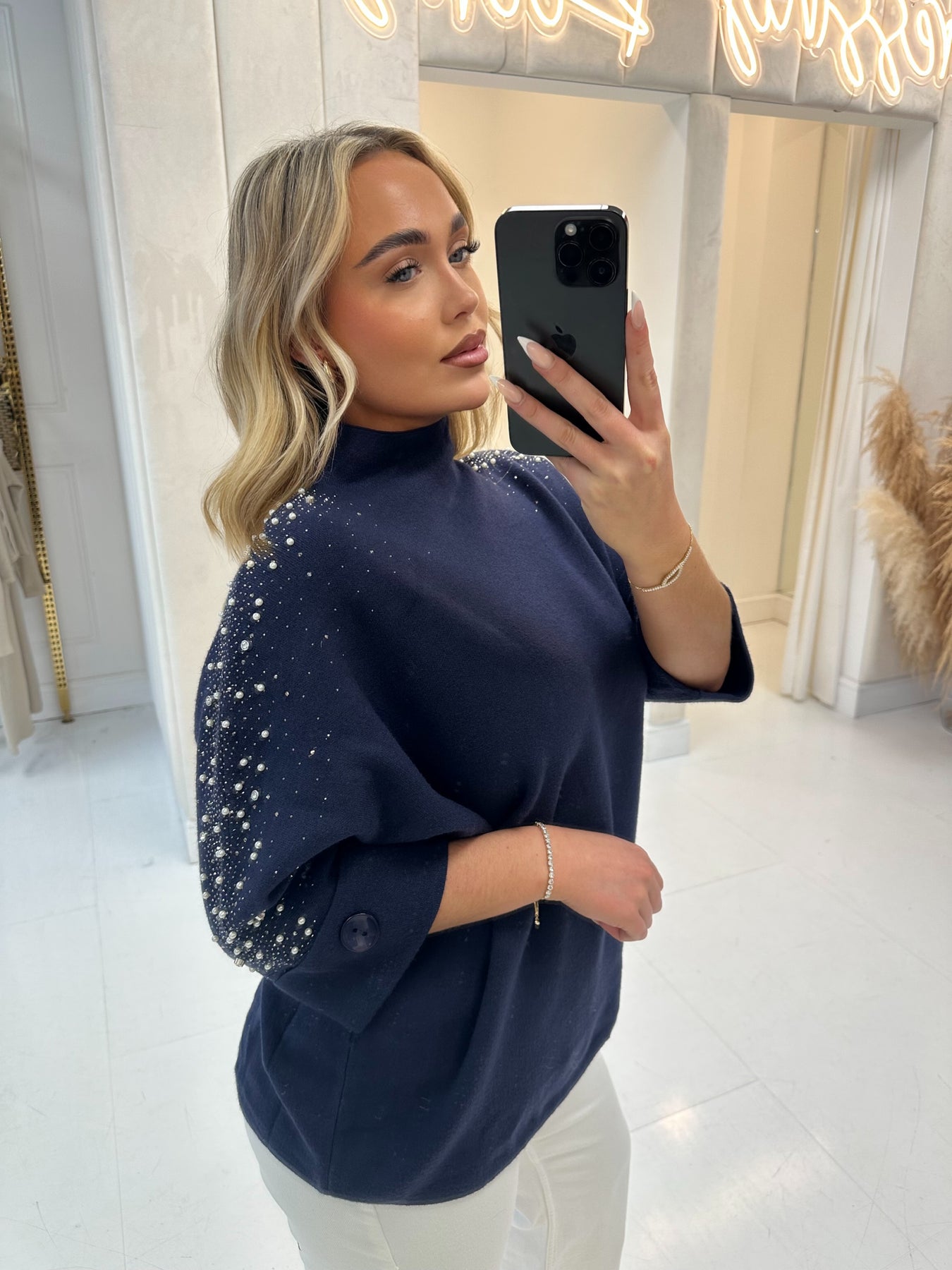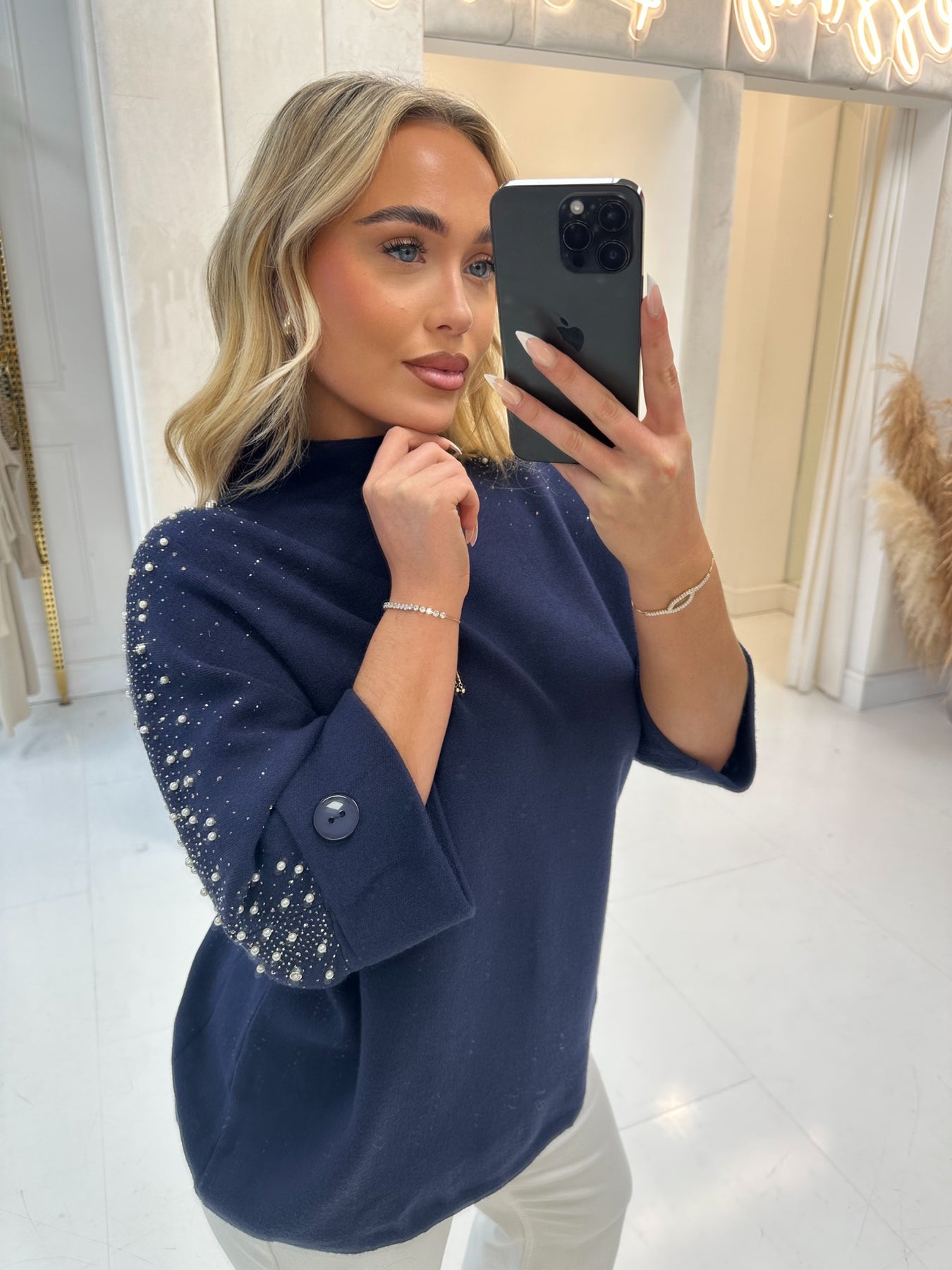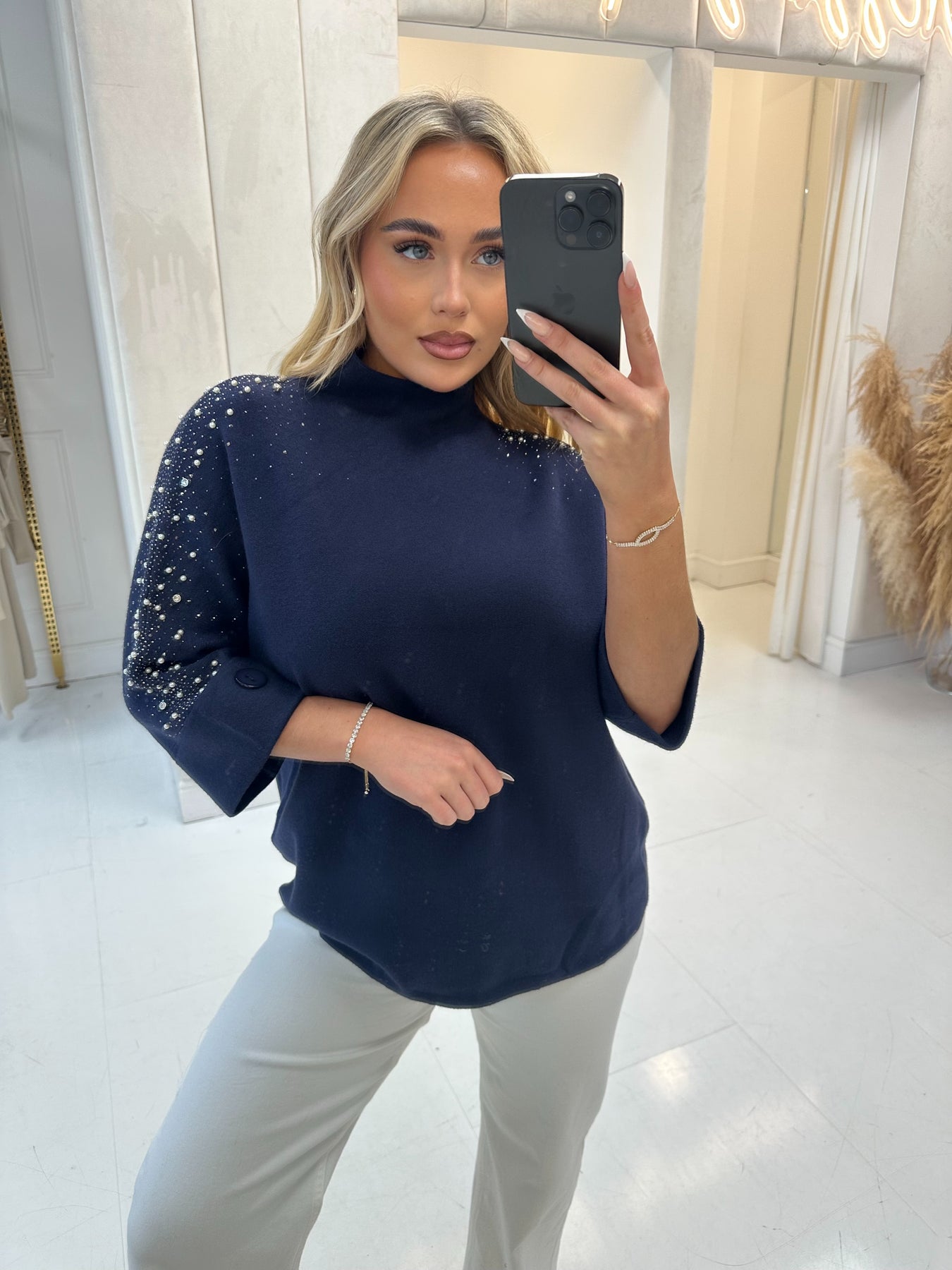 RHEA NAVY CRYSTAL DETAIL JUMPER