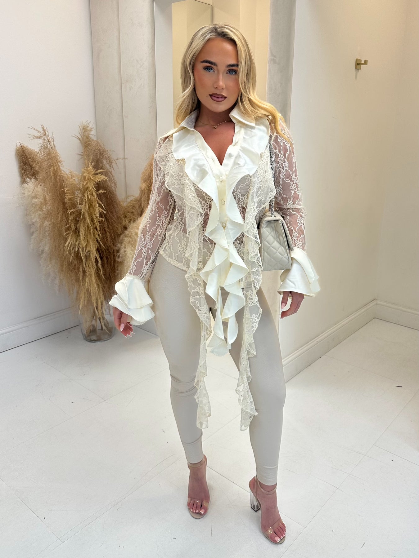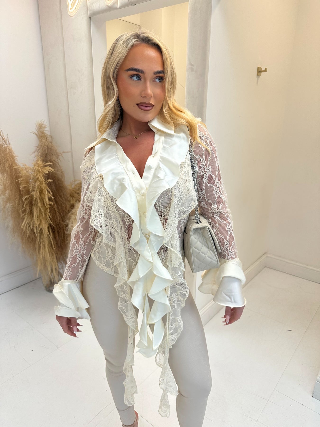 Sara cream lace frill shirt