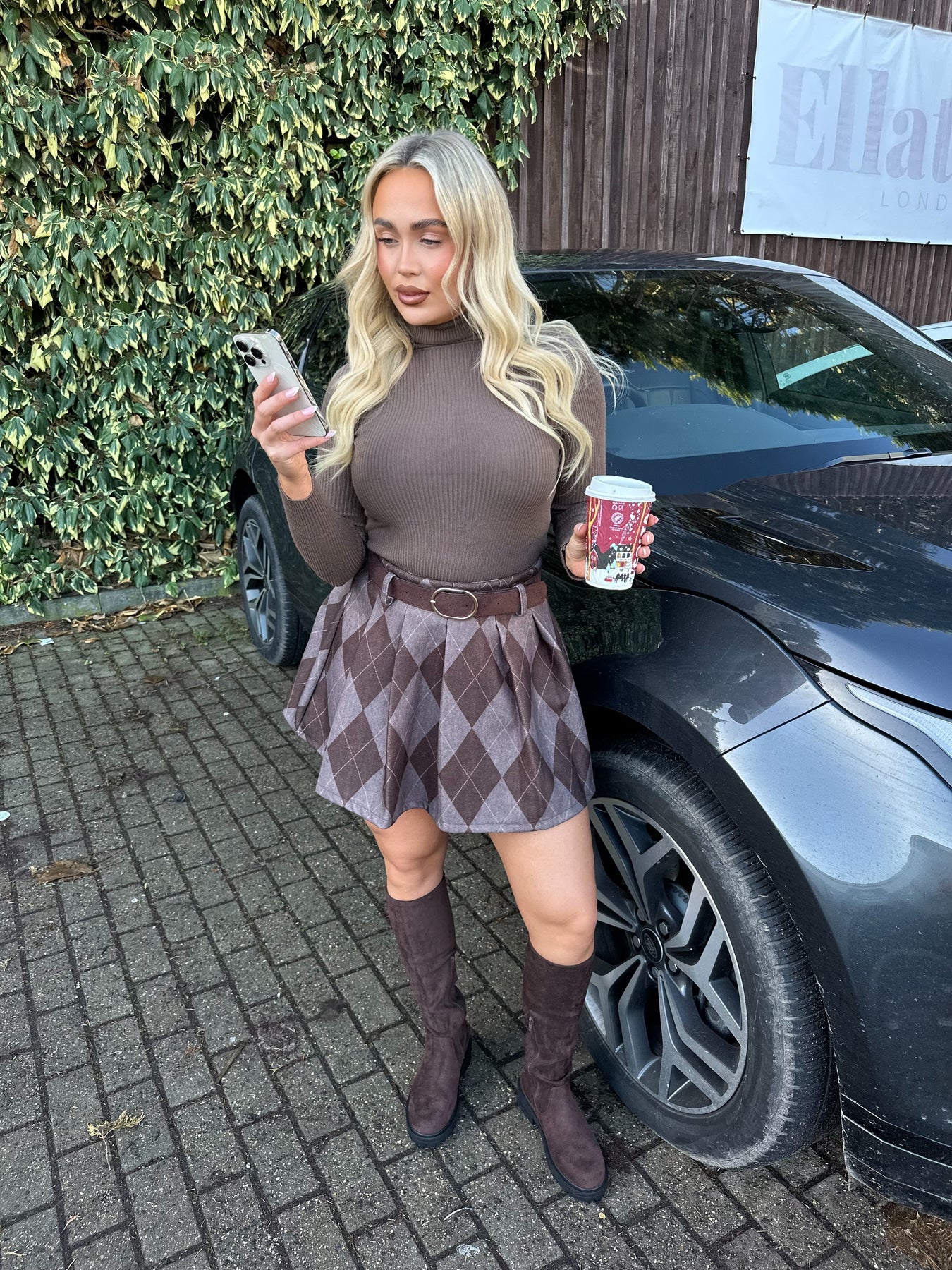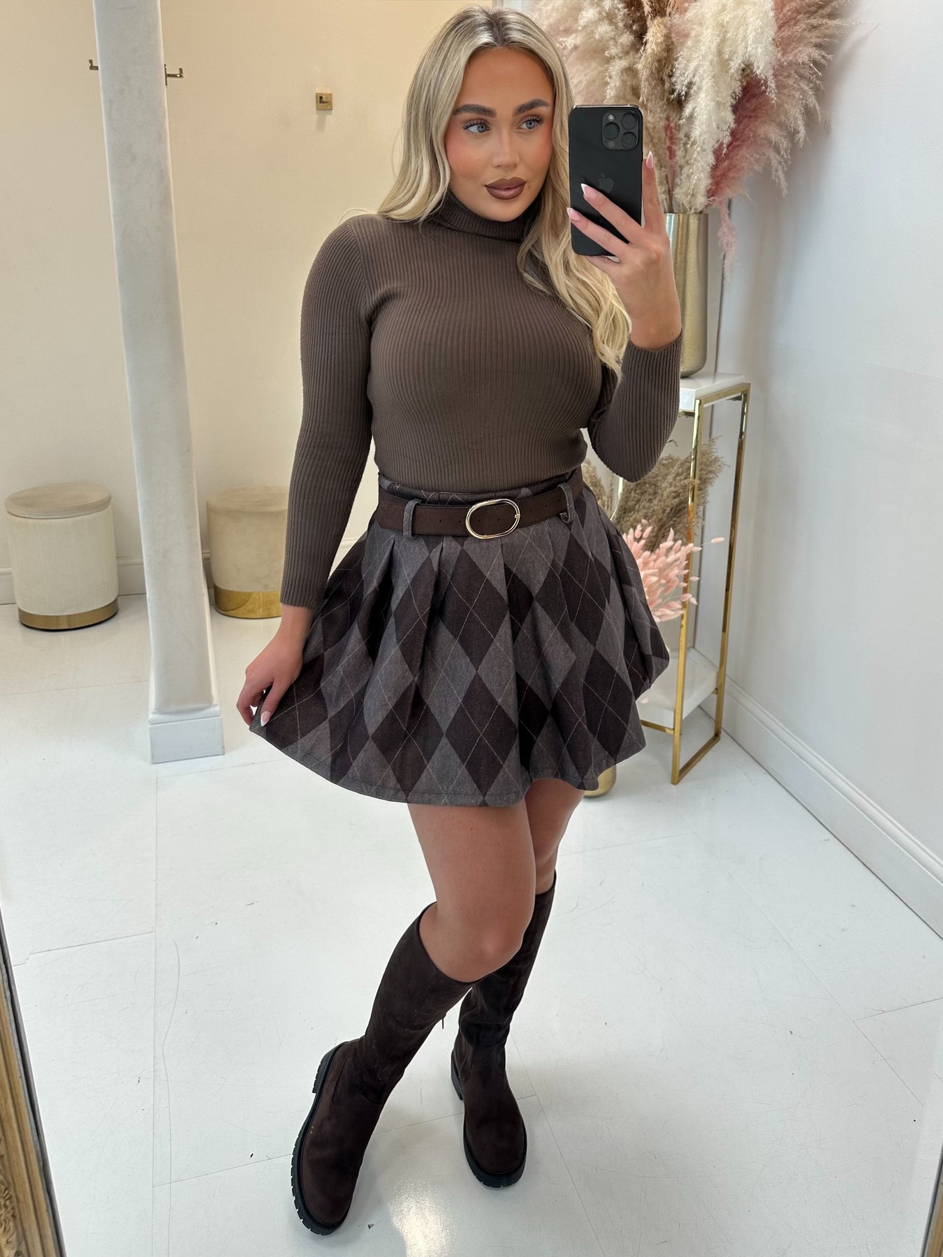 SCARLET GREY DIAMOND PRINT BELTED SKIRT