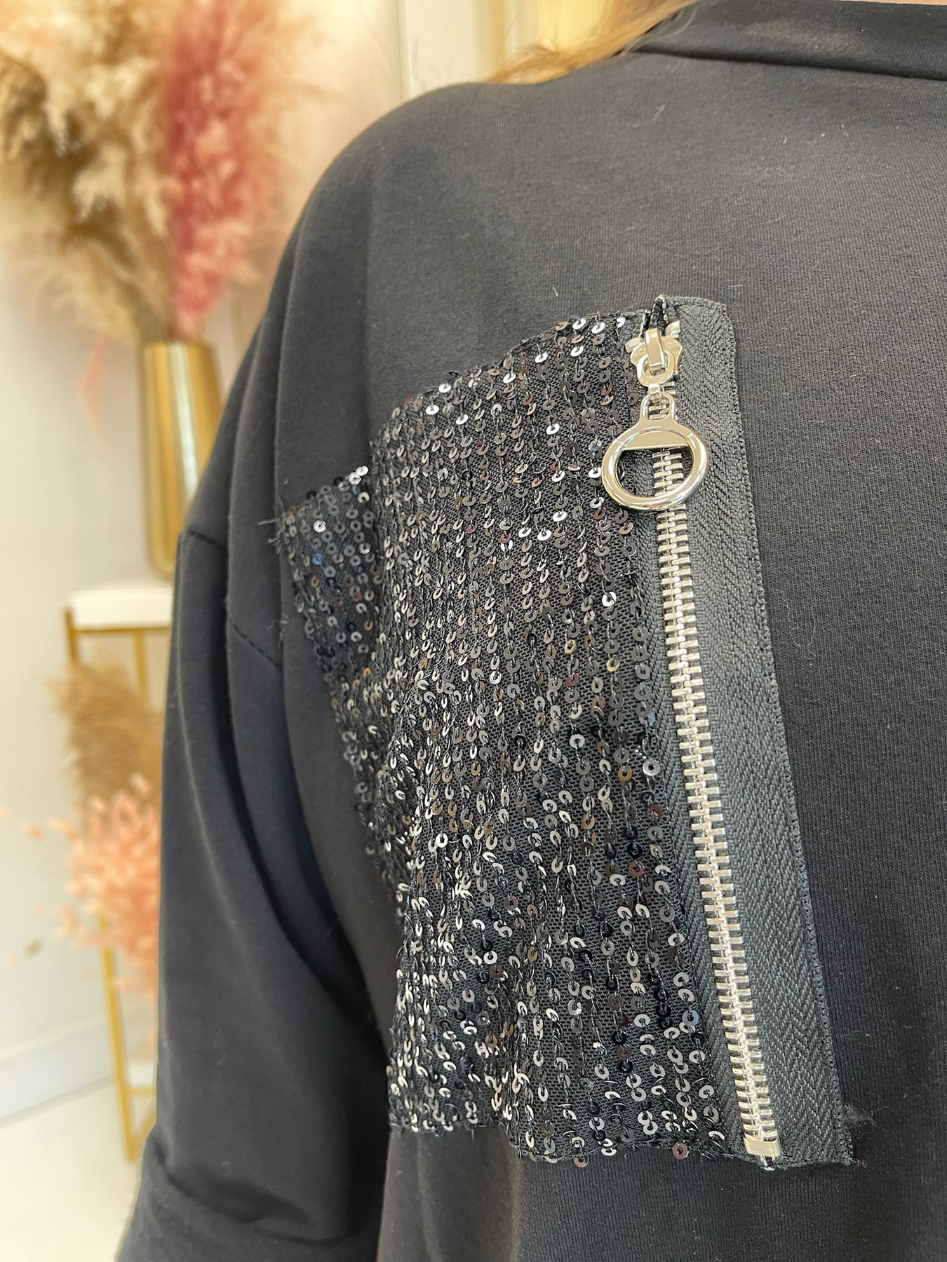 Shania Curve Black Sparkly Trim Top
