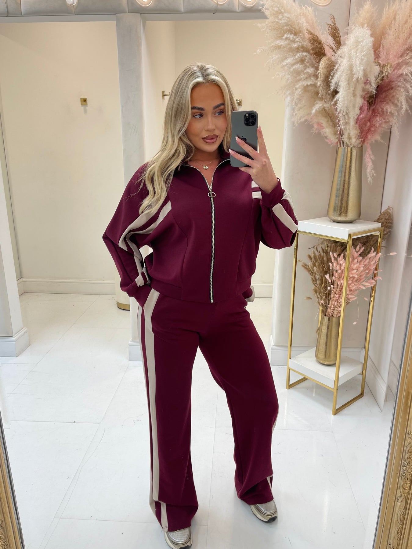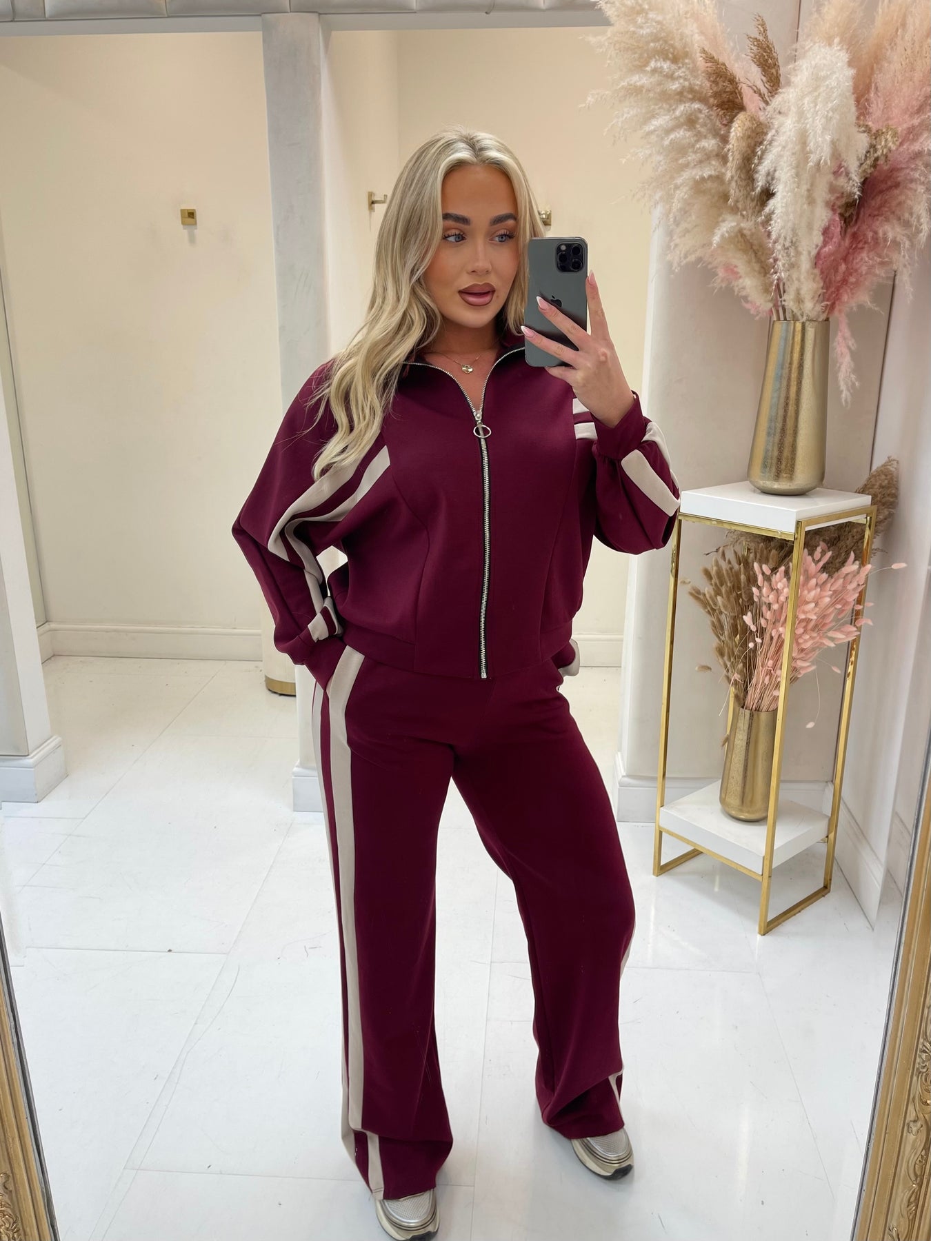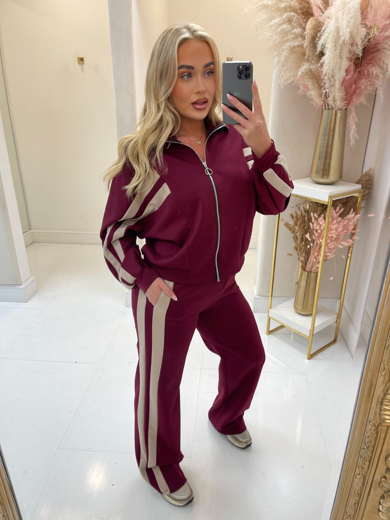 Sophie burgundy stripe zip up tracksuit