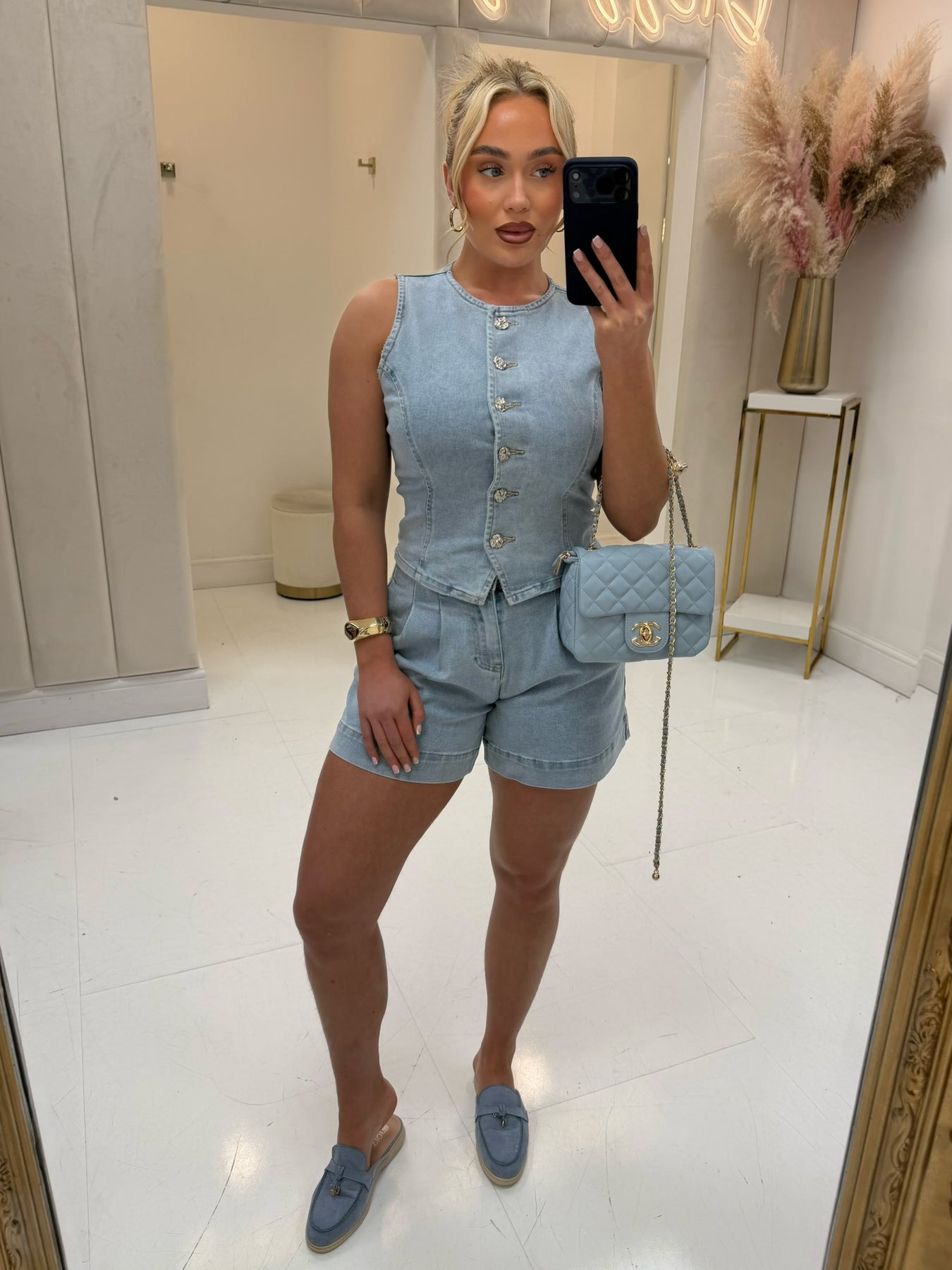 Tessa Matching Denim Waistcoat Short Set